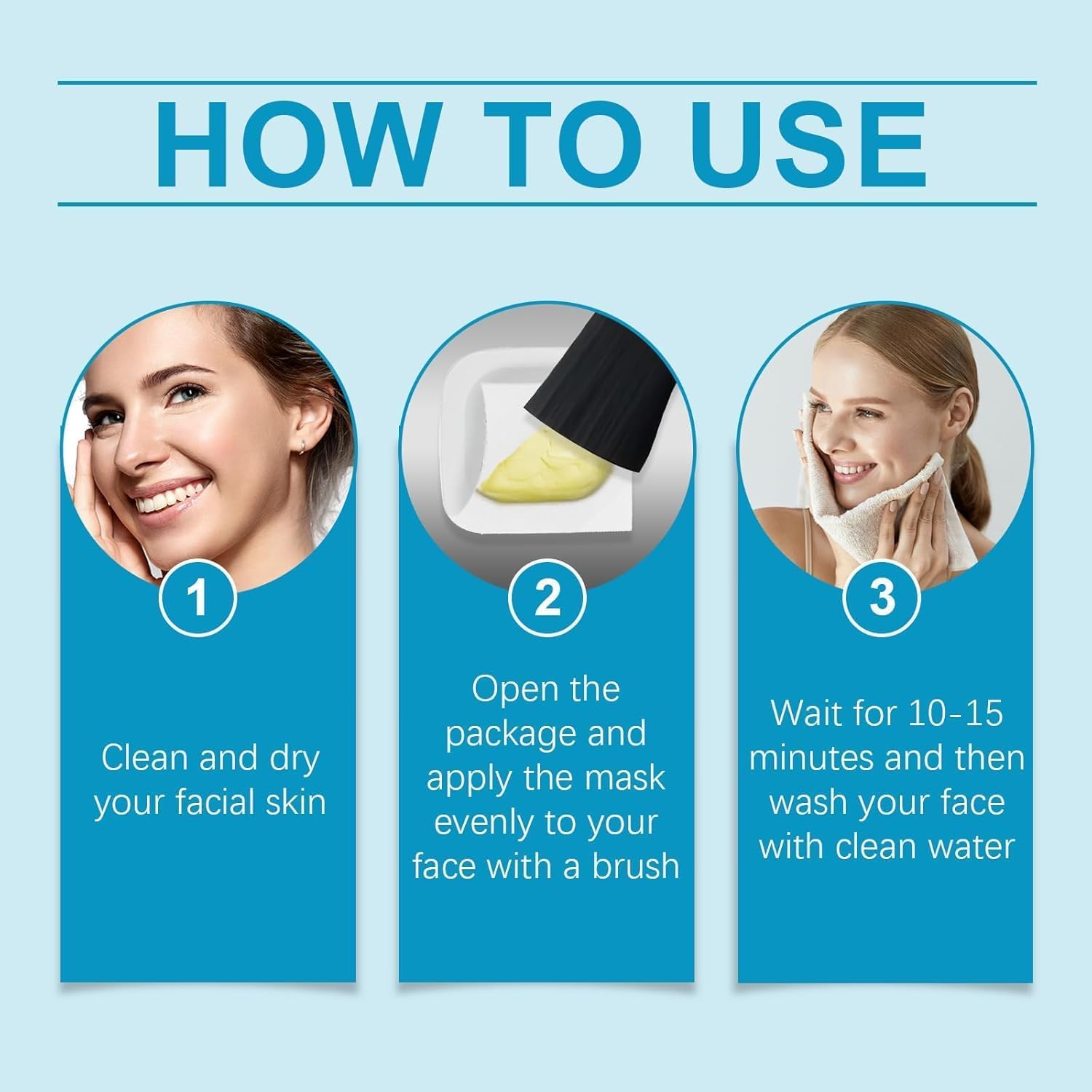 - 【How to Use】 ① Open a single box & apply evenly with the brush. ② Leave for 15 minutes until dry. ③ Rinse off to reveal tighter, glowing skin—no harsh scrubbing needed!
