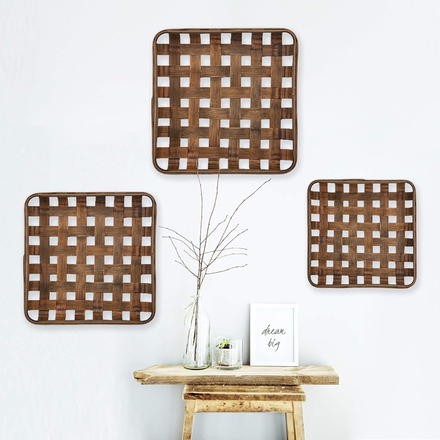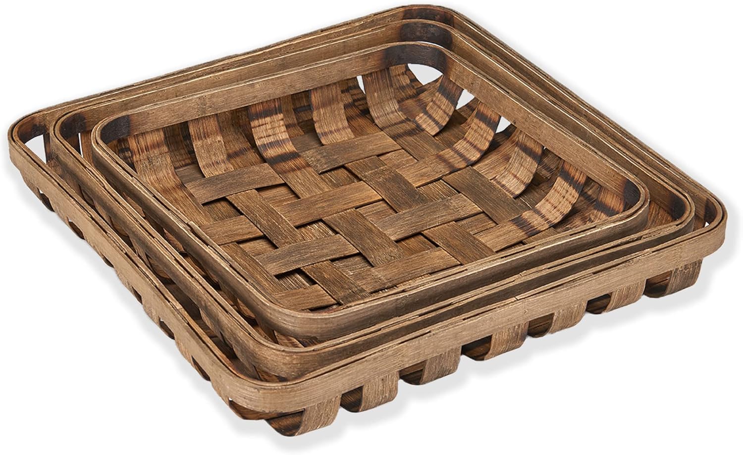 - Decorative tobacco baskets - A gorgeous tray set with style and function. Three rectangular tobacco baskets that are great to serve food and drinks and for display as well. NOTE - tobacco baskets may have visible burn marks that were made during the weaving process. These appear natural and add to the vintage, handmade appeal.