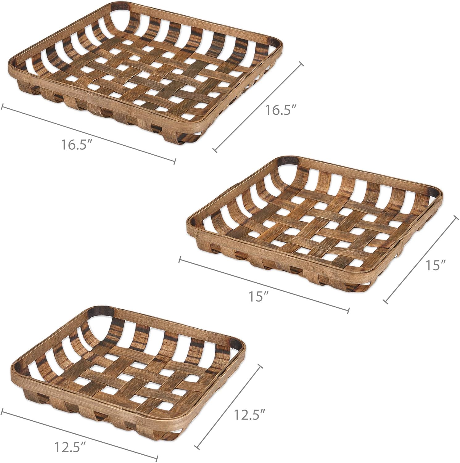 - Dimensions - Large Tray: 16.5” x 16.5” x 2.75”, Medium Tray:15" x 15", Small Tray: 12.5" x 12.5". Set of 3 trays.