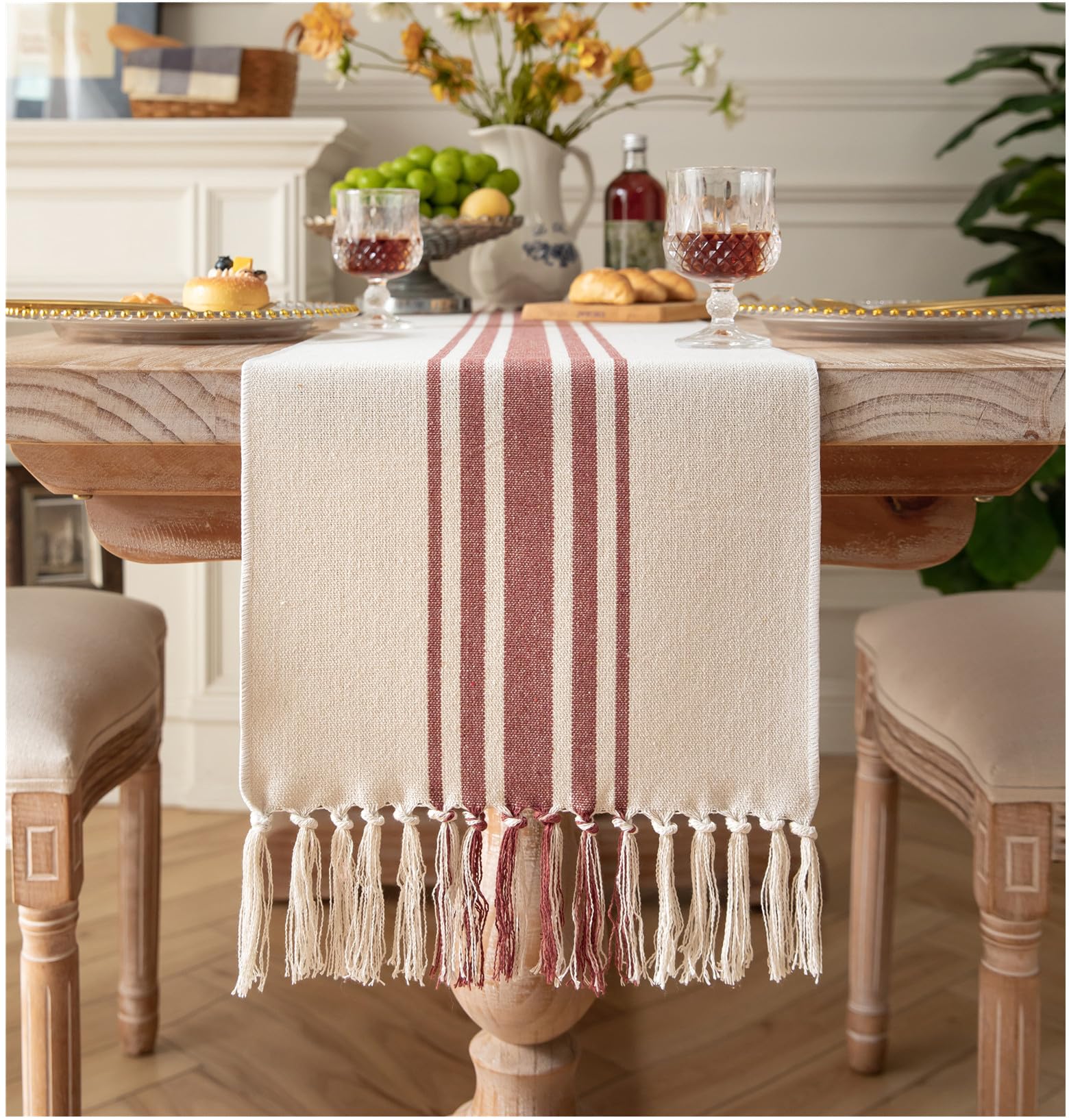 - 【Application】This boho runner for table is a great accent piece for more places than your dining room table! Try this modern farmhouse table runner on an entry way, on top of a dresser, a picnic table, an office desk, dressing table or as a coffee table runner.And a great anniversary or birthday gift.