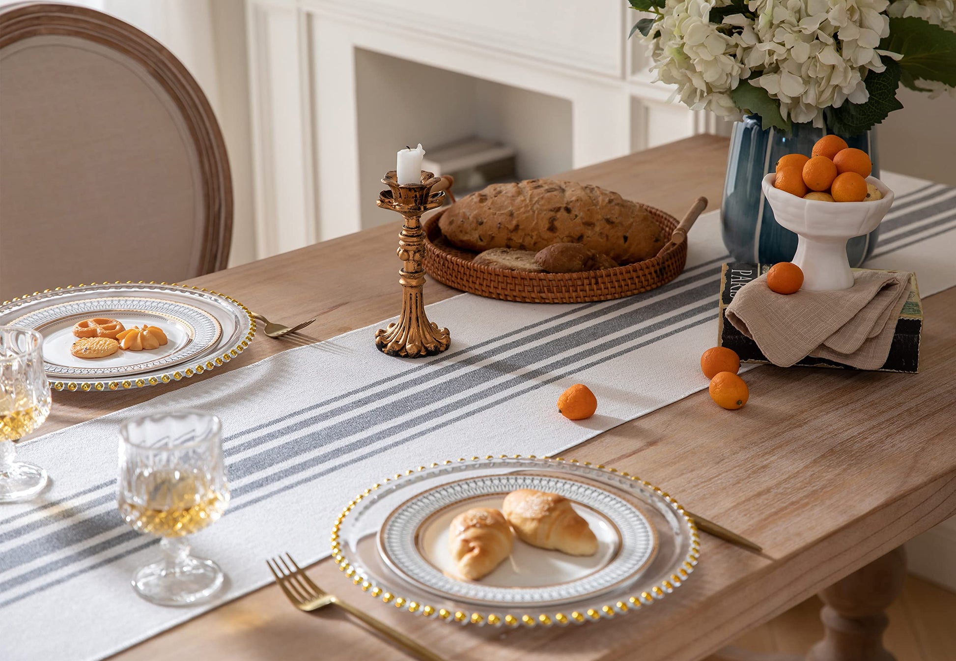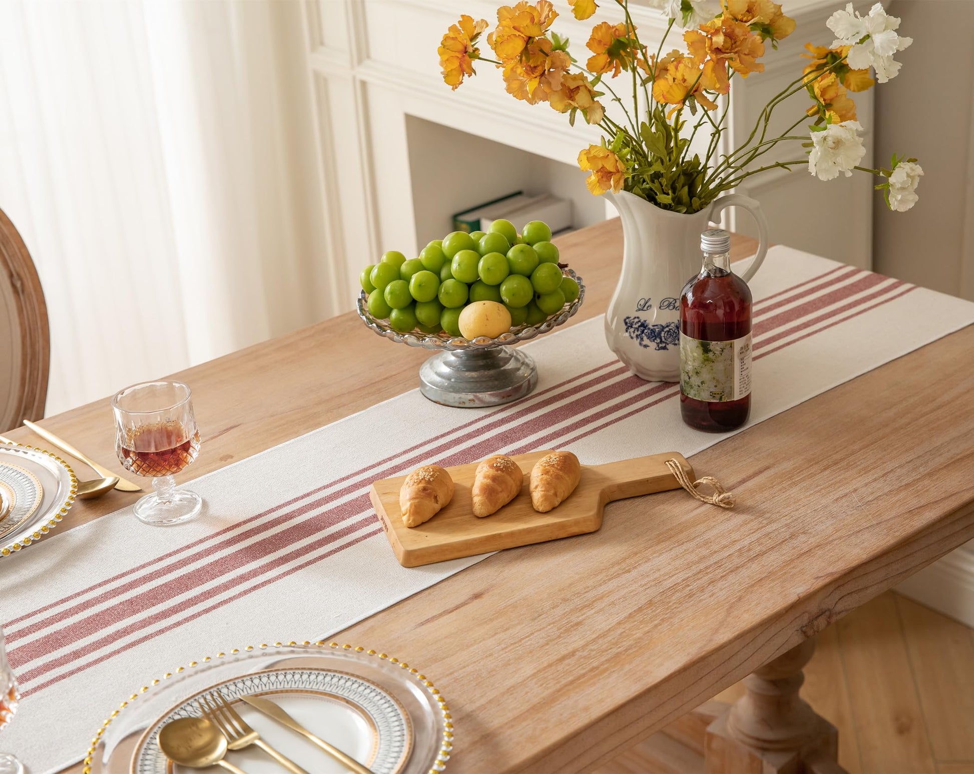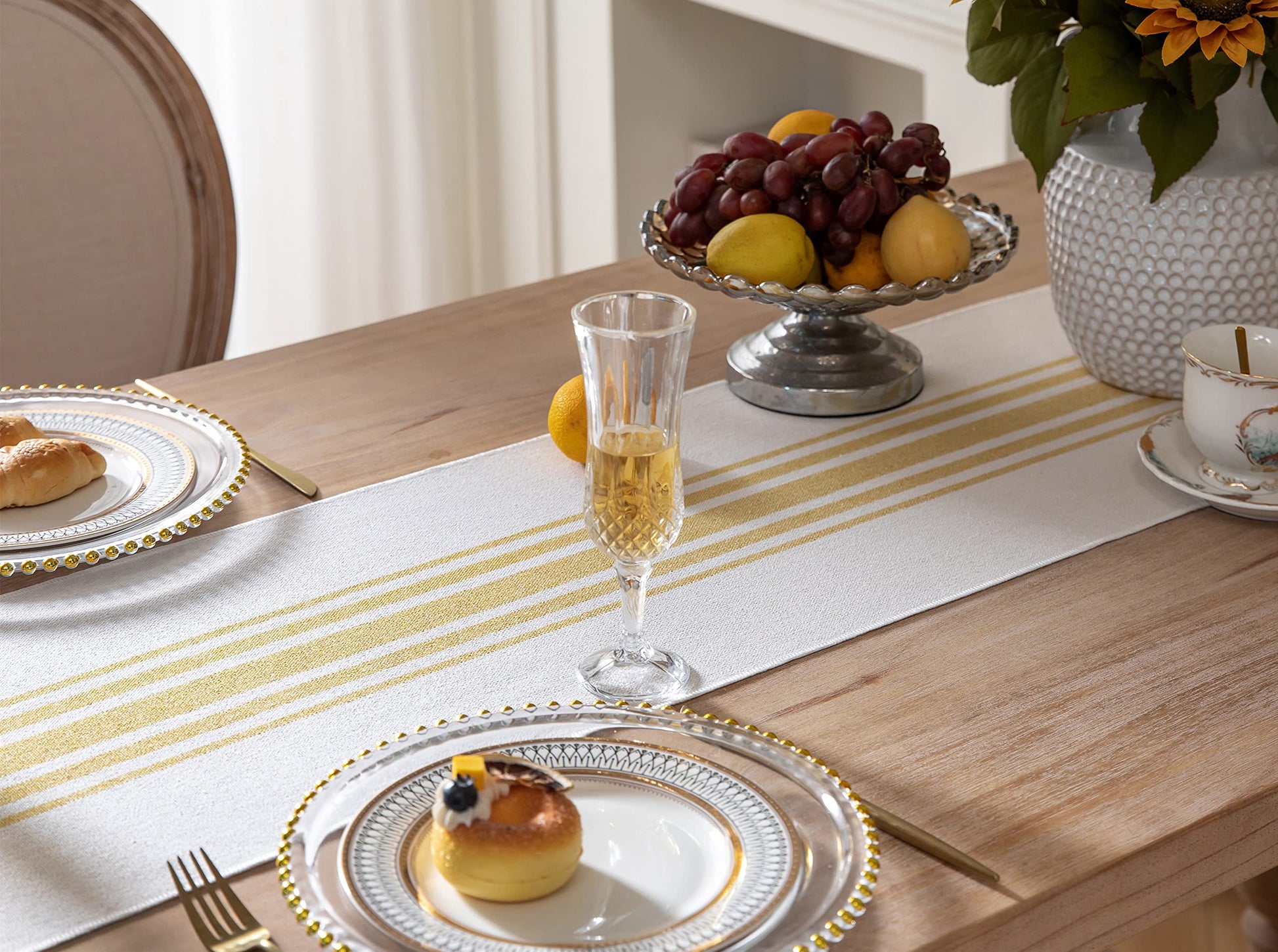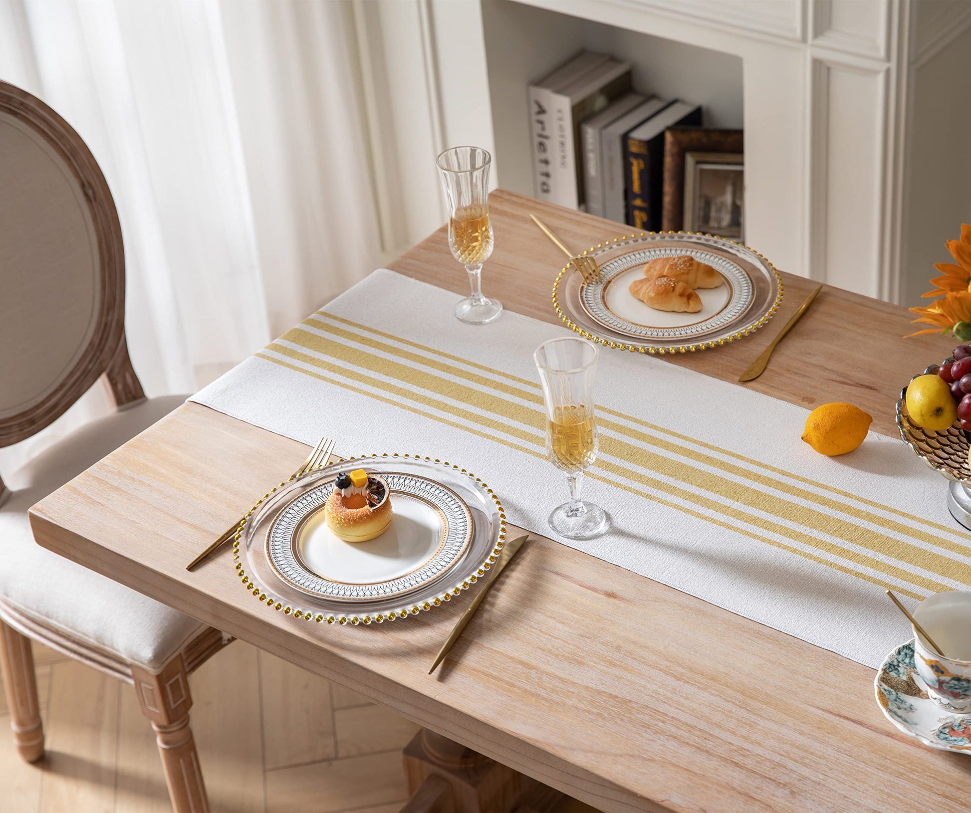 - 【High Quqlity Materials】 The Natural and high quality fabric can protect your table from scratching, spills, and messes perfectly, Both sides are beautiful and available.The simple striped pattern is classic and modern.Wrinkle-free,elegant.