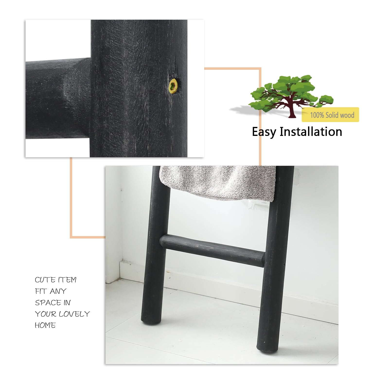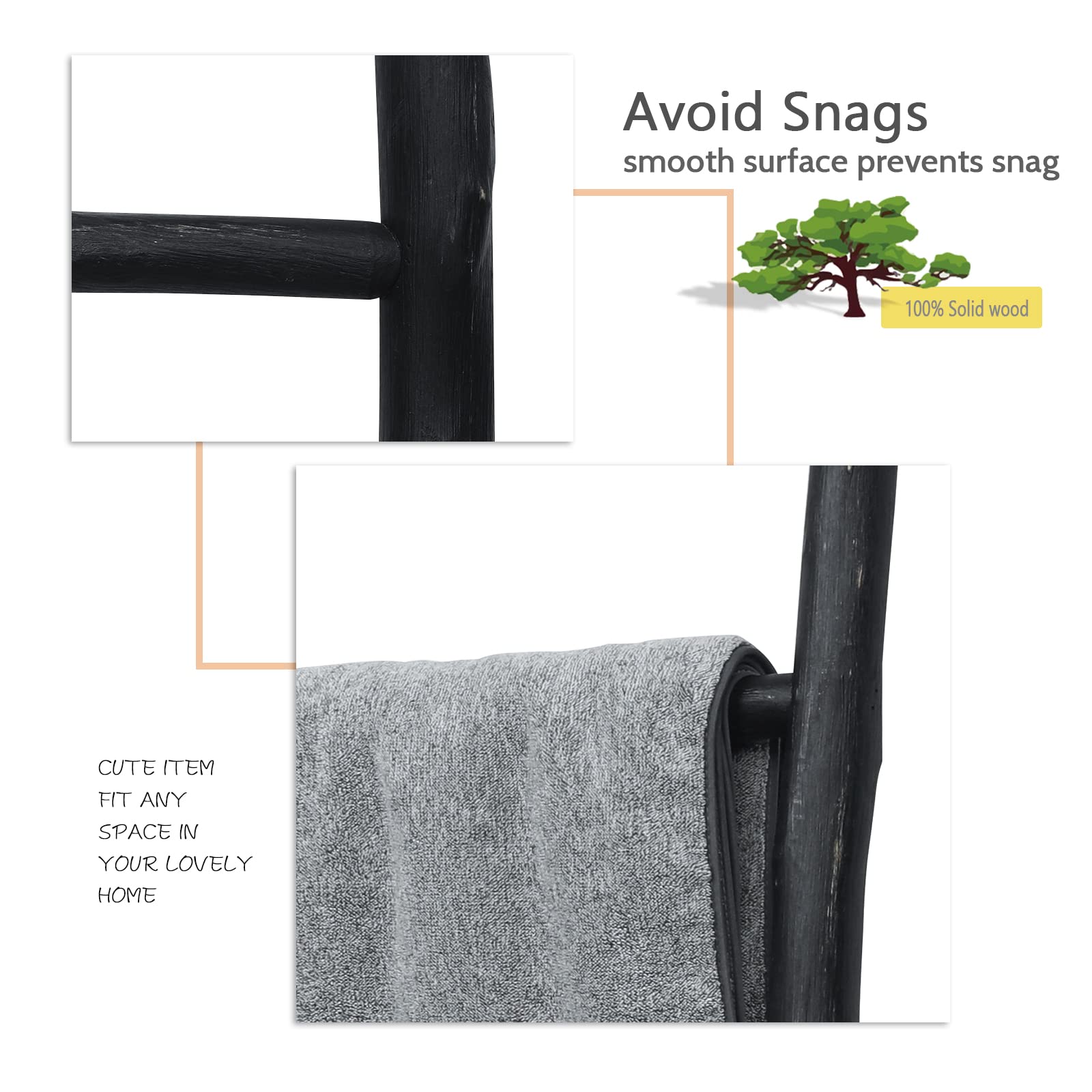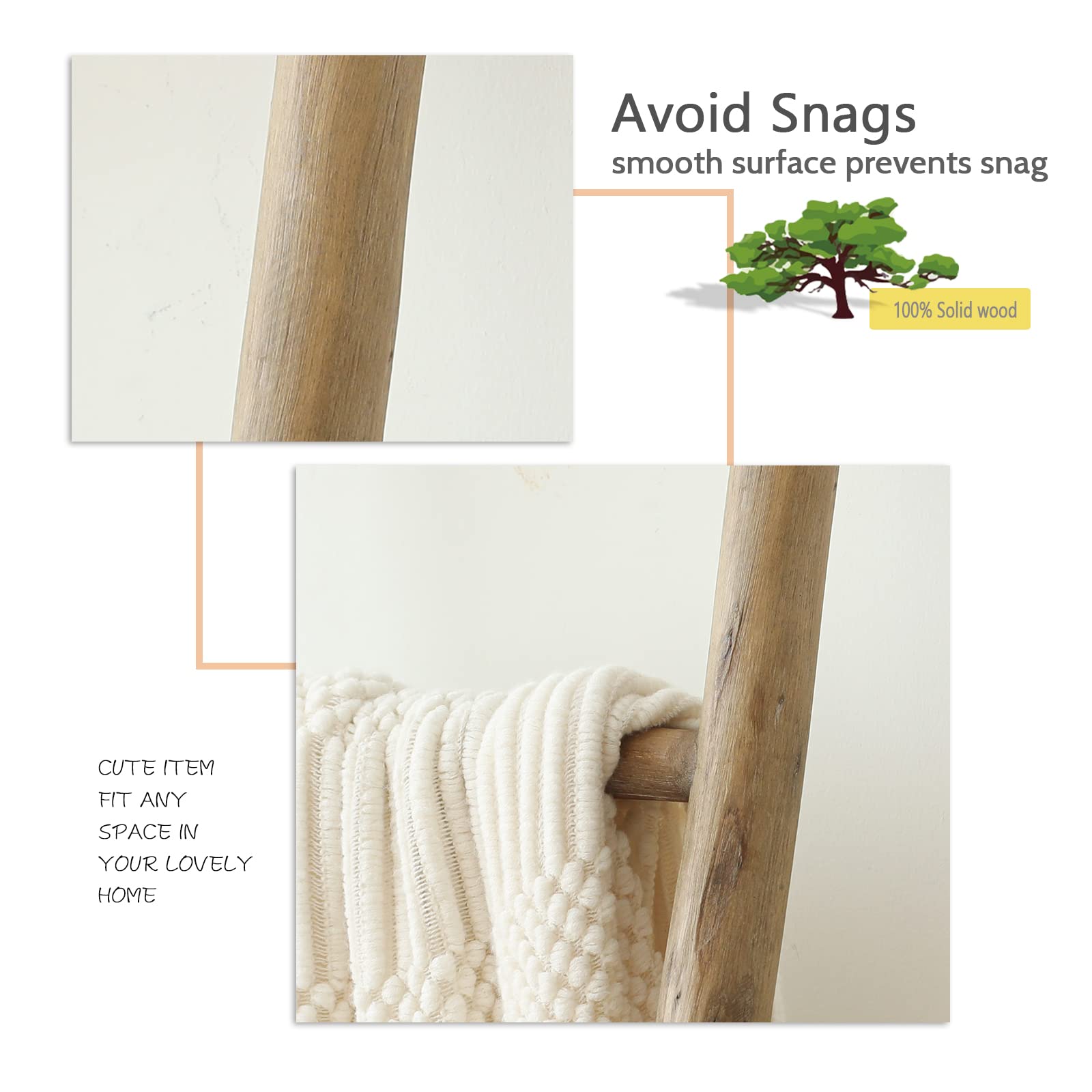 - Crafted from high-quality natural wood: The blanket ladder is handcrafted by skilled artisans using premium quality wood, ensuring its sturdiness and durability. It is a perfect blend of traditional craftsmanship and modern design, making it a perfect fit for any decor. Note: each batch of raw material has color difference, please allow the final finished of the ladder you has different look from the photos you see on Amazon