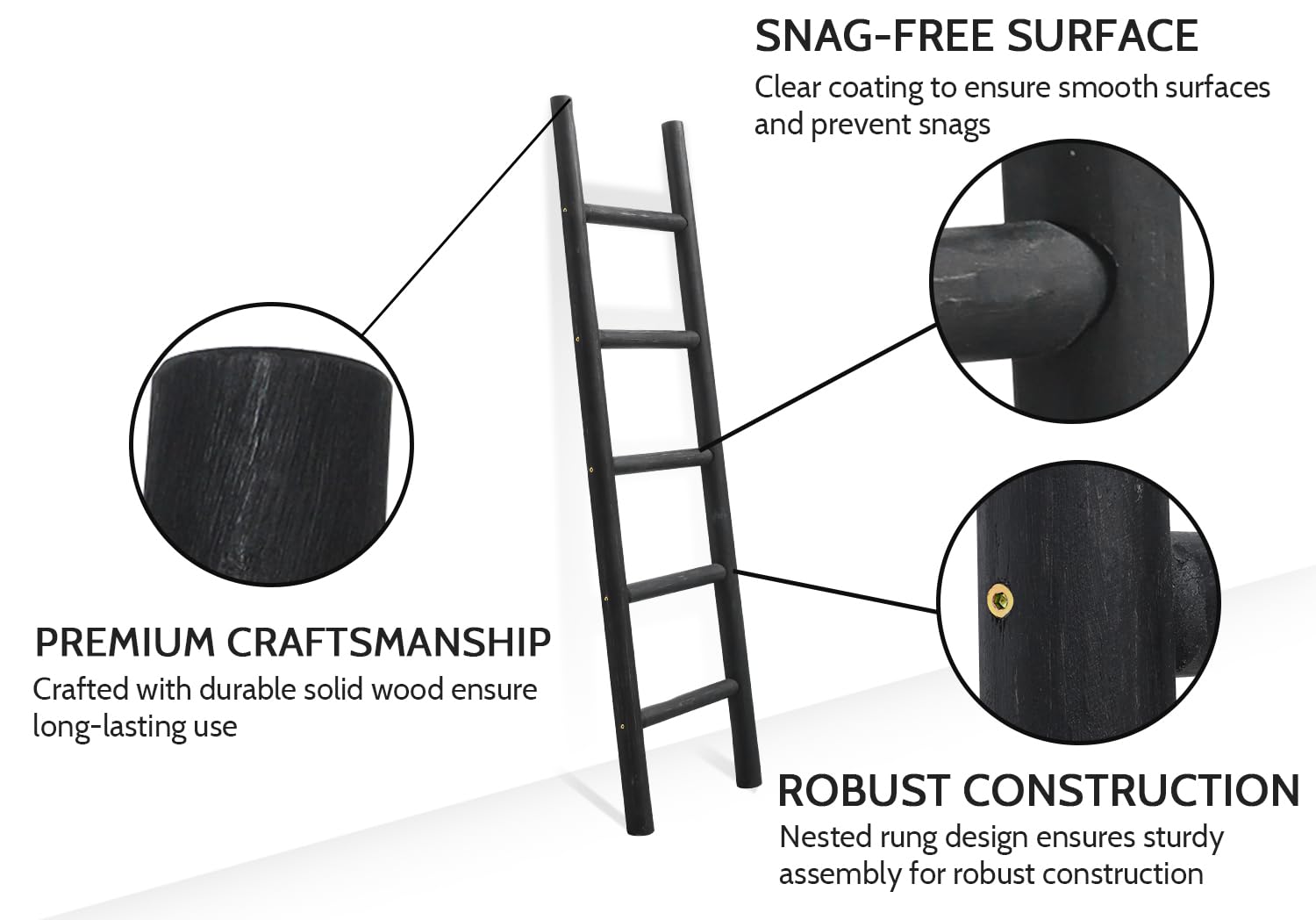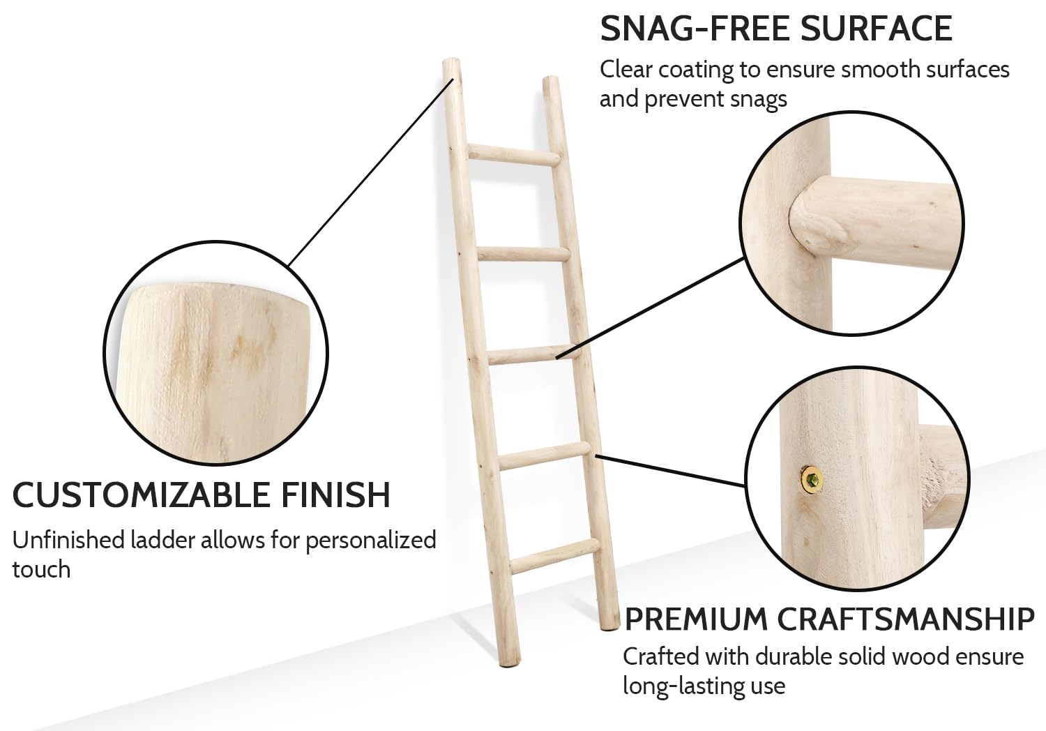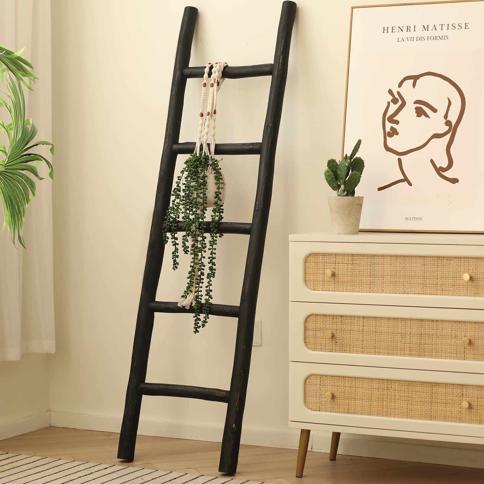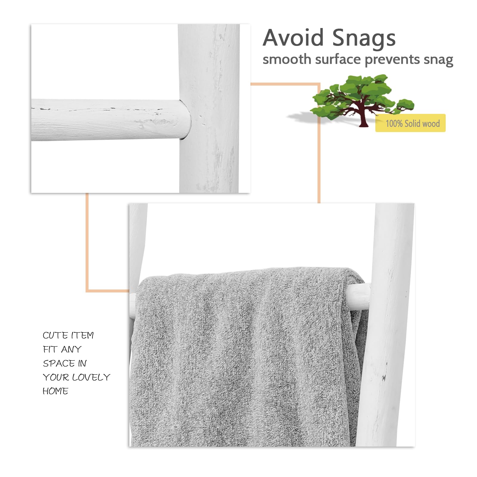 - Crafted from high-quality natural wood: The blanket ladder is handcrafted by skilled artisans using premium quality wood, ensuring its sturdiness and durability. It is a perfect blend of traditional craftsmanship and modern design, making it a perfect fit for any decor. Note: each batch of raw material has color difference, please allow the final finished of the ladder you has different look from the photos you see on Amazon