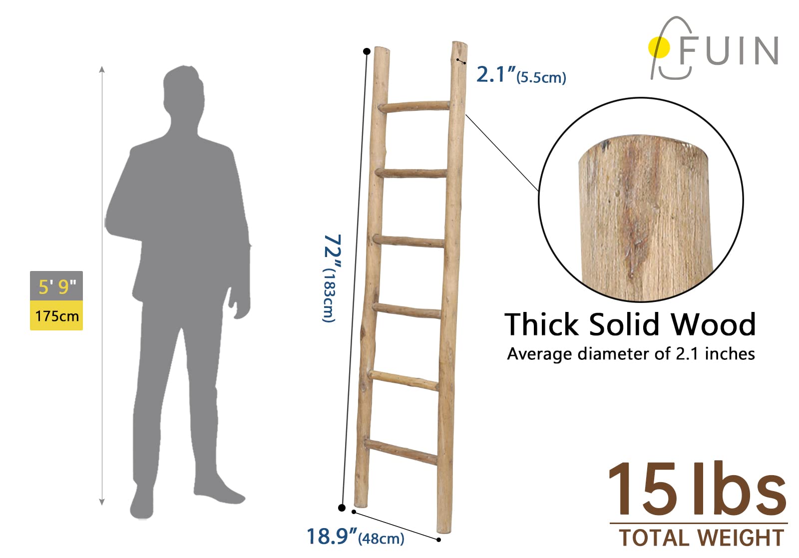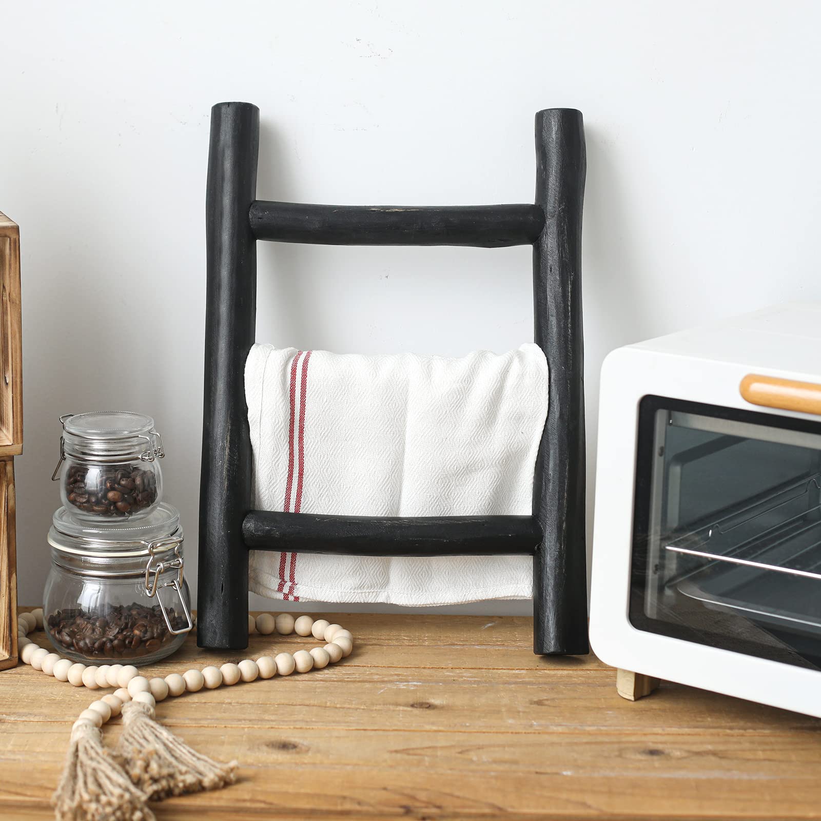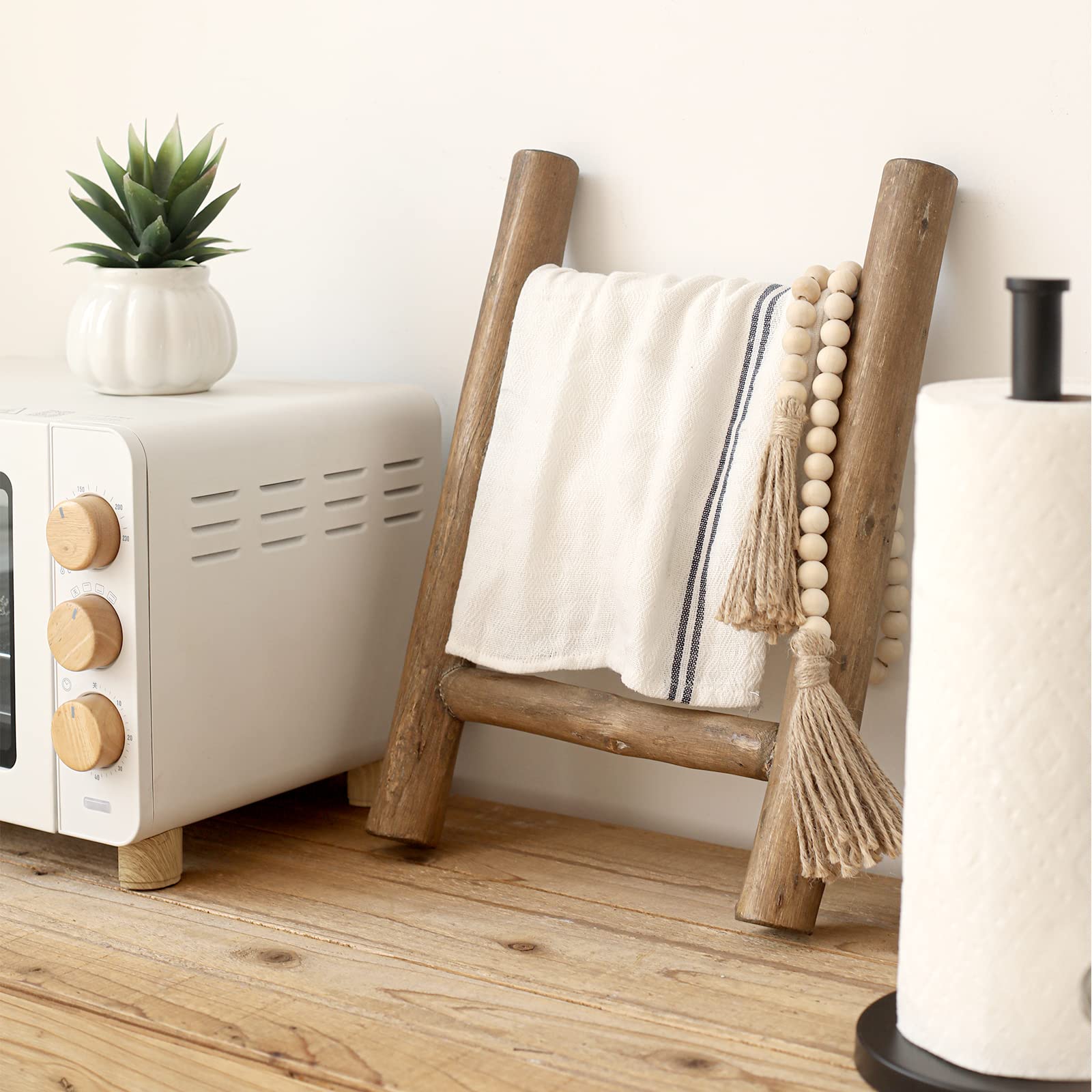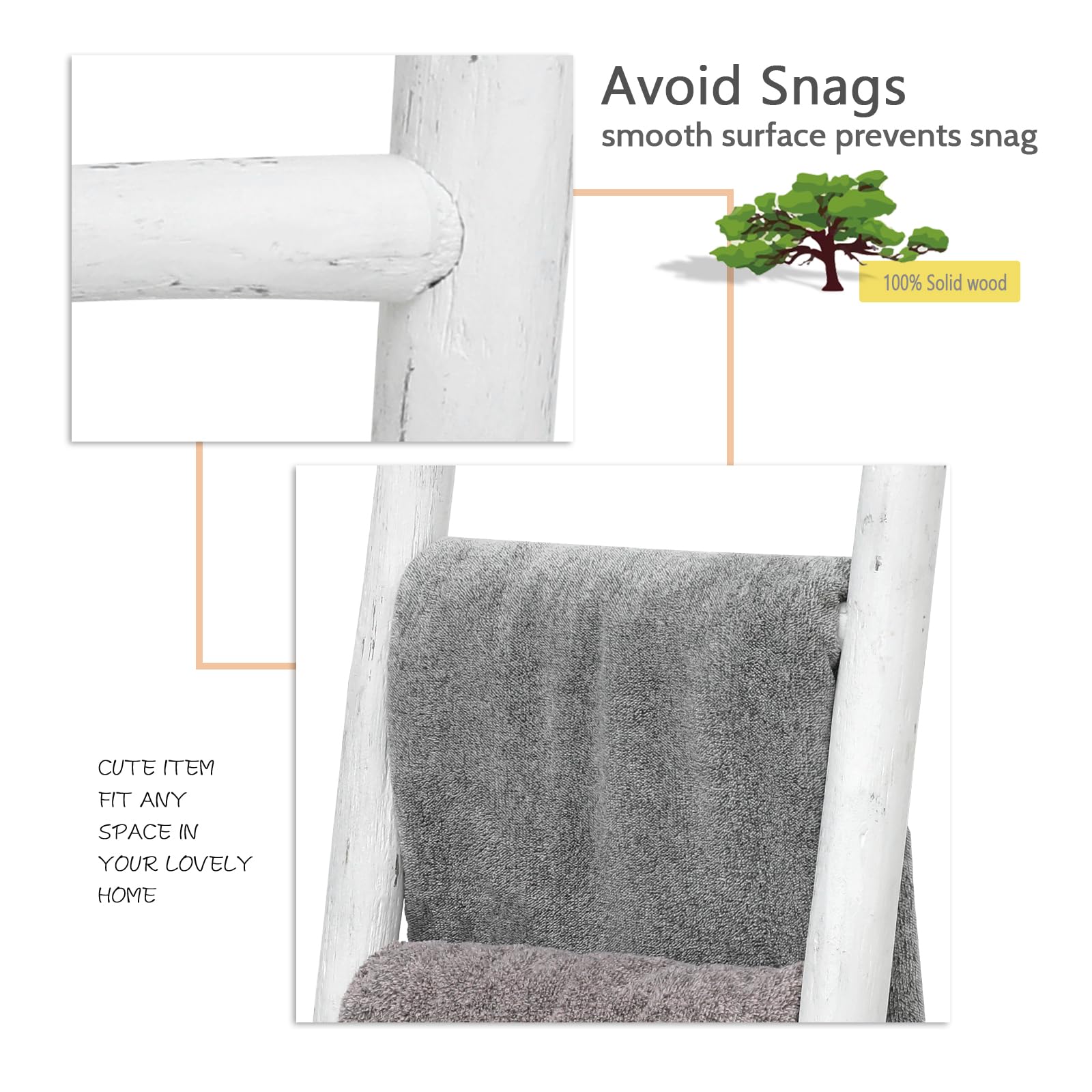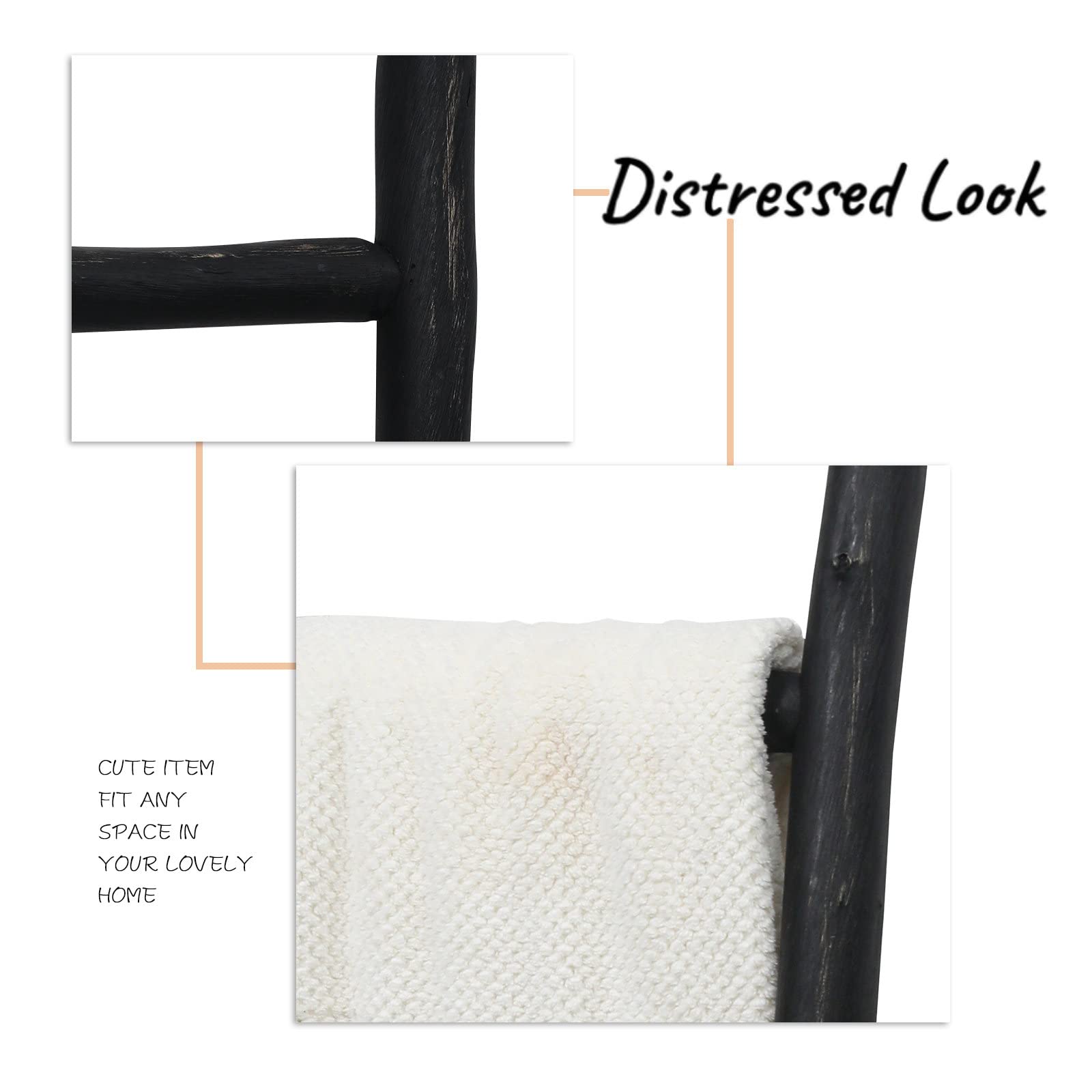 Less climbing, more catching the eye! This ladder won't help you reach your roof, but it's perfect for lending a touch of artful appeal to your ensemble.This charming wood ladder is made from solid wood, the rungs can be used for display your blanket, towel, or throws It's for decoration only!. Its rustic farmhouse style is designed for matching your living room, bathroom, bedroom decor.
