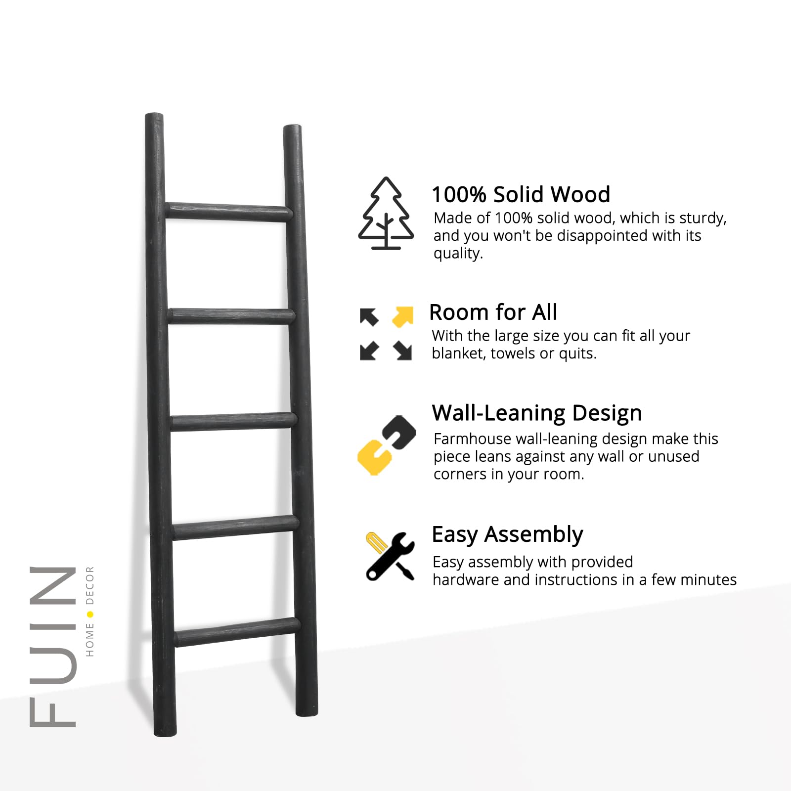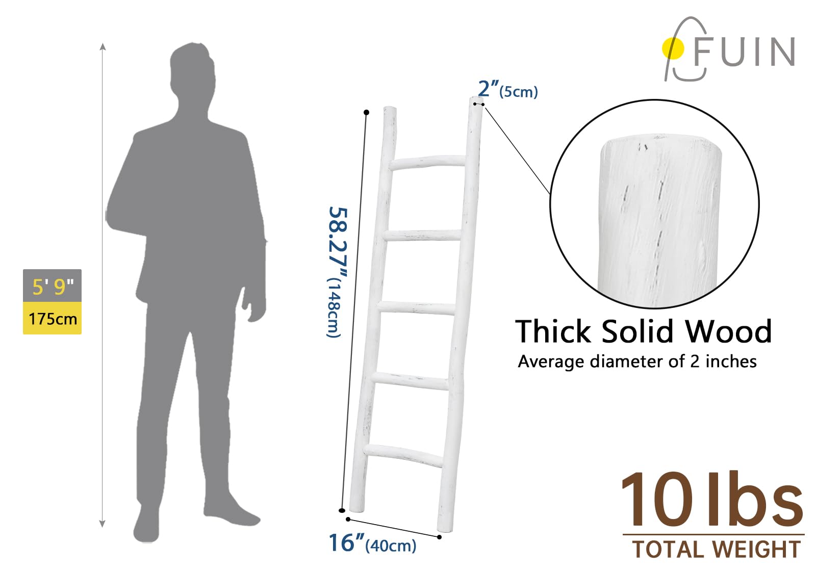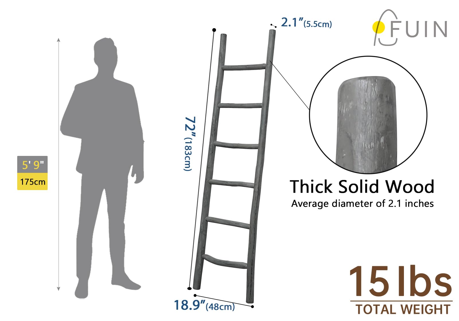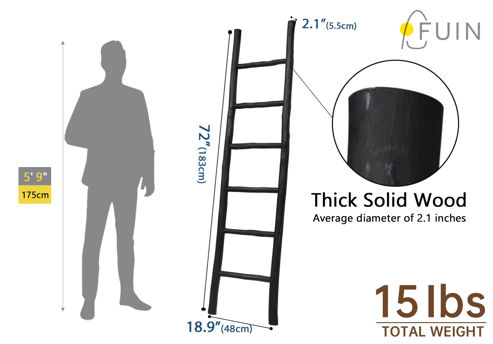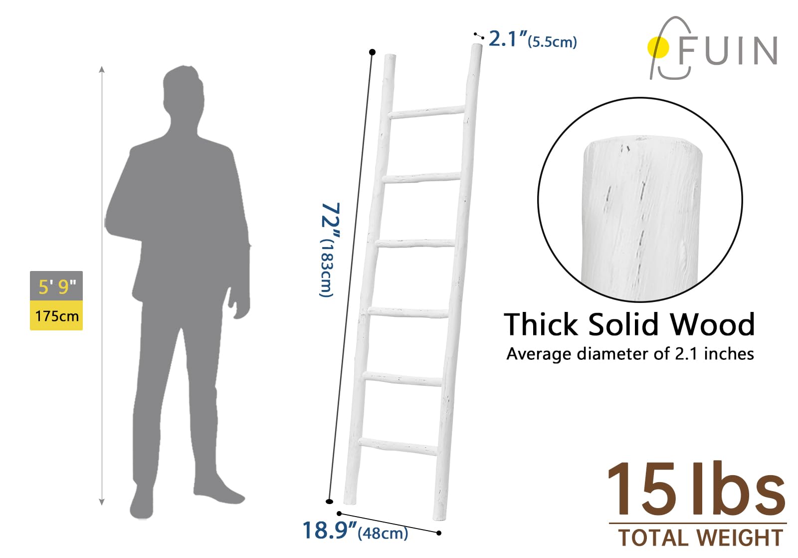 Less climbing, more catching the eye! This ladder won't help you reach your roof, but it's perfect for lending a touch of artful appeal to your ensemble.This charming wood ladder is made from solid wood, the rungs can be used for display your blanket, towel, or throws It's for decoration only!. Its rustic farmhouse style is designed for matching your living room, bathroom, bedroom decor.