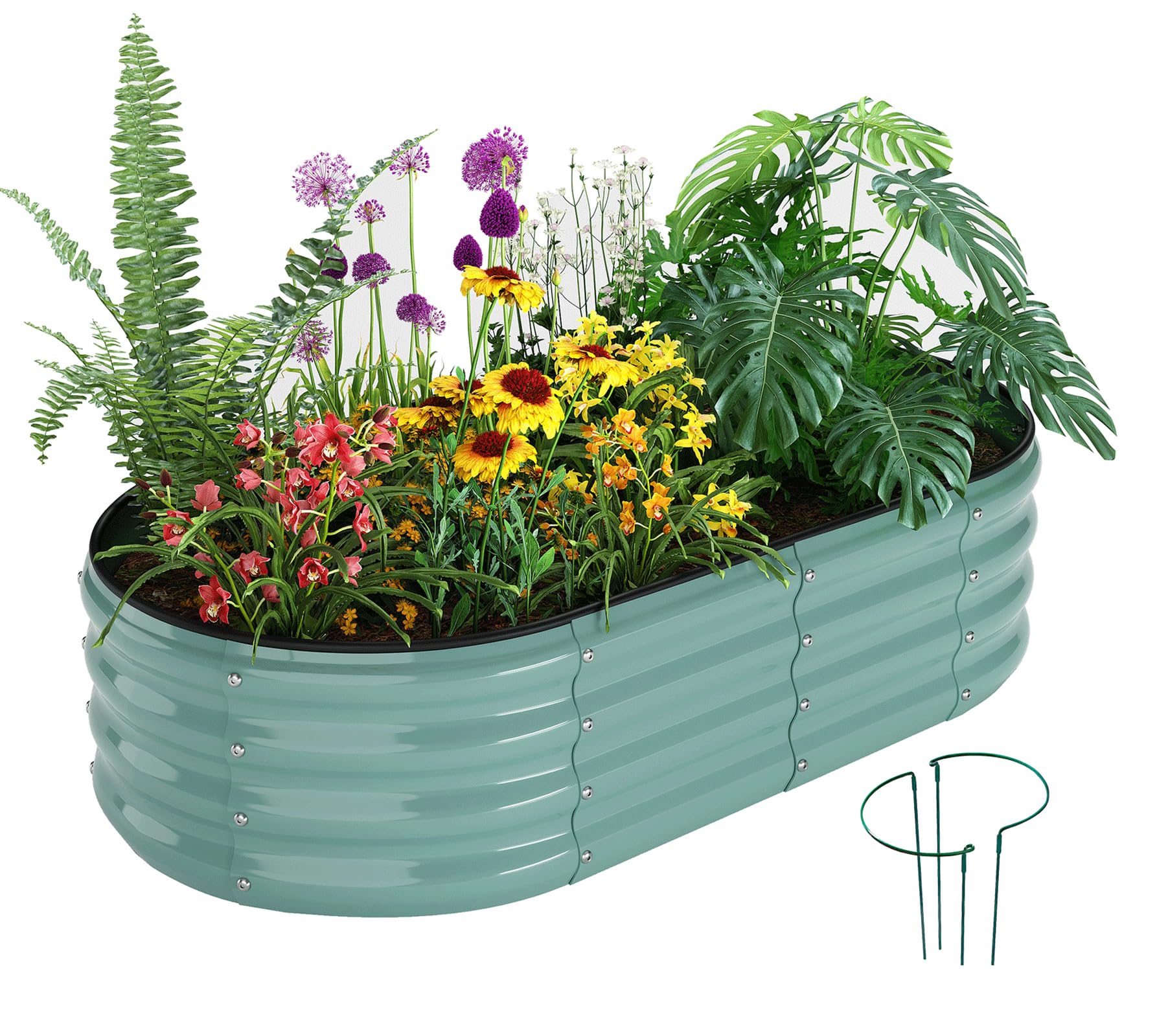 - Outdoor galvanized planter boxes size: 8×2×1 ft, Can hold garden soil and fertilizers: 15.14 Cubic feet. Available in a variety of colors, you can choose the one that best suits your garden style. Moreover, you can use galvanized sheets to splice out the size and shape you want. Use your design skills and imagination, and combine this galvanized garden beds outdoor with metal plant stakes to DIY your beautiful garden