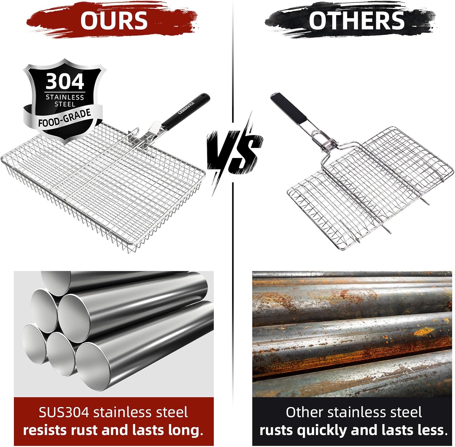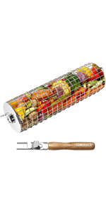 - FOOD SAFE MATERIAL: The grilling basket is made of elected SUS304 food grade stainless steel for long-lasting use, which is rust-free and dishwasher-safe. Compared with other stainless steel in the market, this one is more durable and safer.