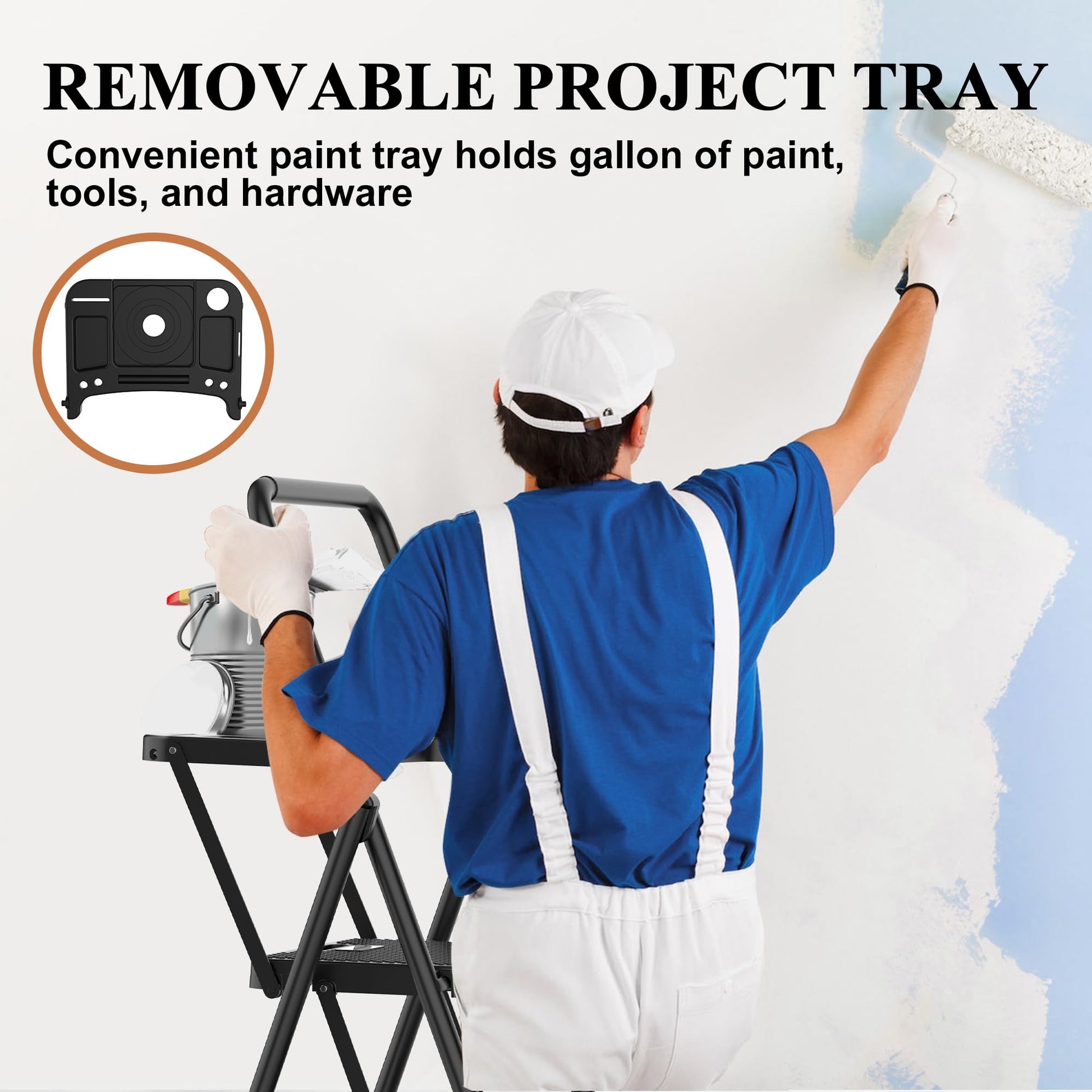 - NON-SLIP DESIGN: The 3 step ladder has non-slip rubber handgrip making the stool easy to climb and carry. Wide pedals with non-slip rubber pattern offer heel-to-toe foot support. Big rubber feet fully touch the groud to stays firmly and prevent floors from scratches