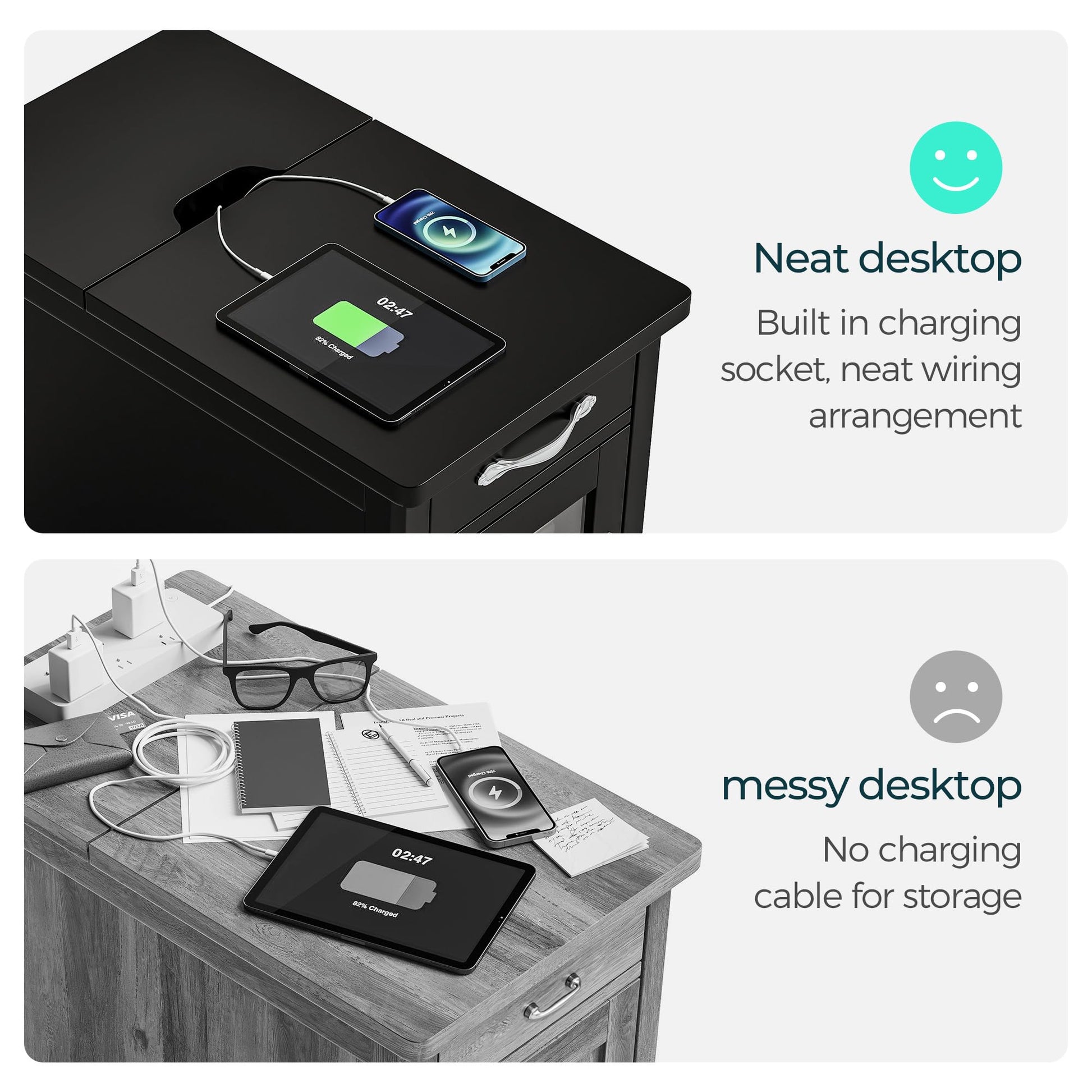 - Integrated Charging Solutions - The end tables in this set are equipped with built-in charging stations, featuring three AC outlets and two USB ports. This design ensures that your devices stay powered up while reducing cable clutter, offering unparalleled convenience for your living space.