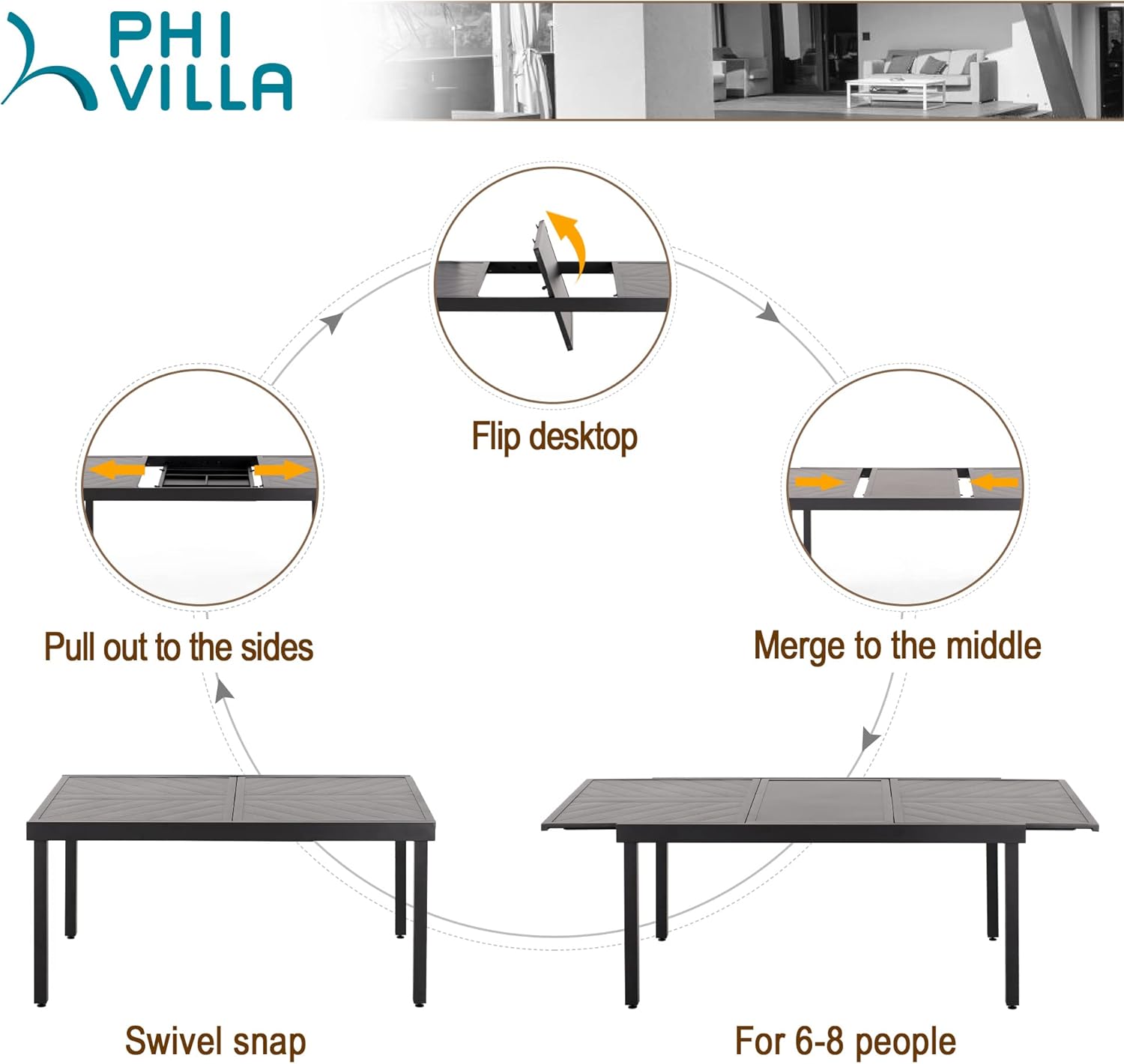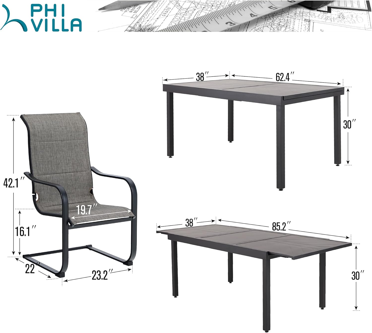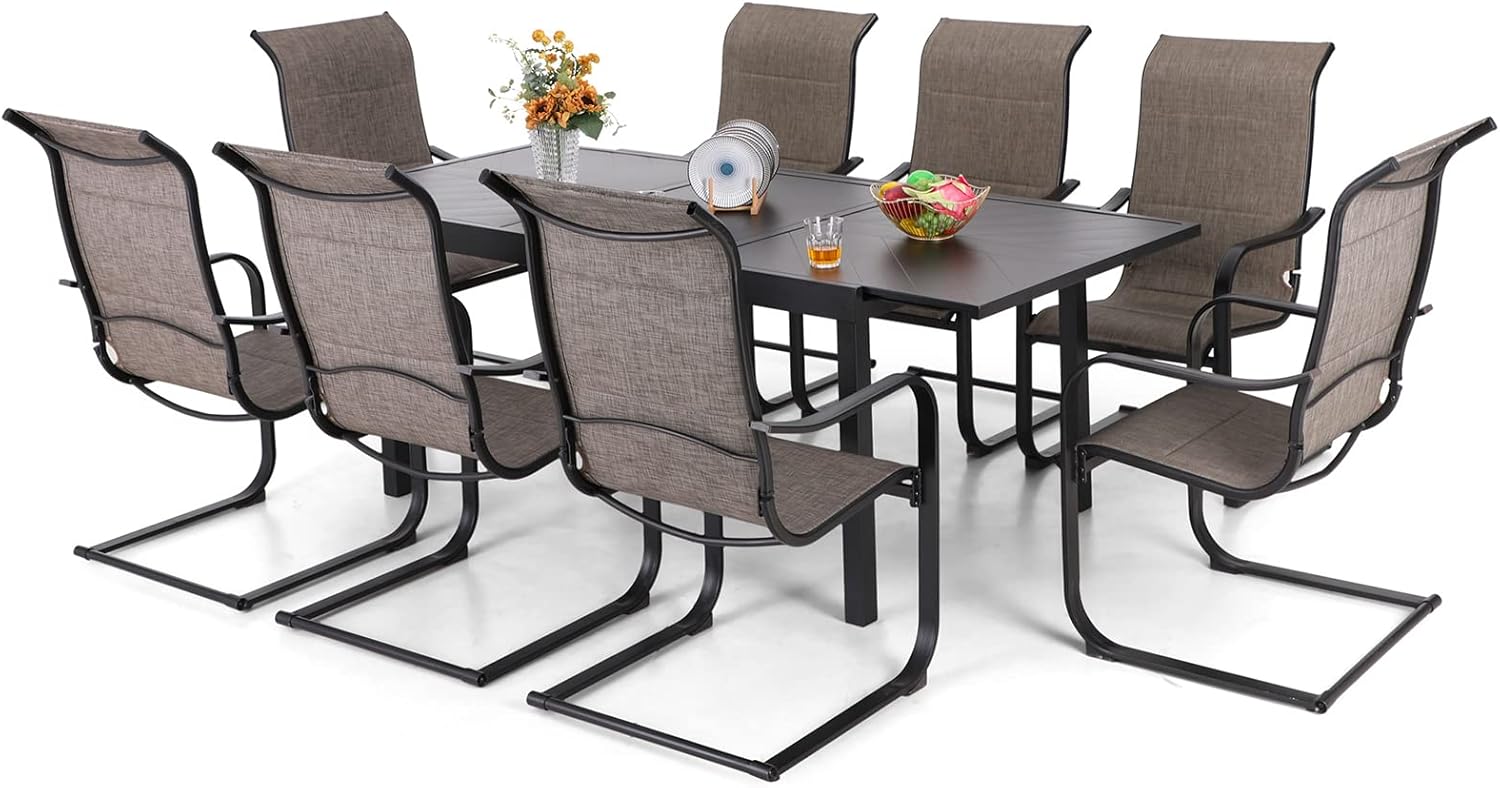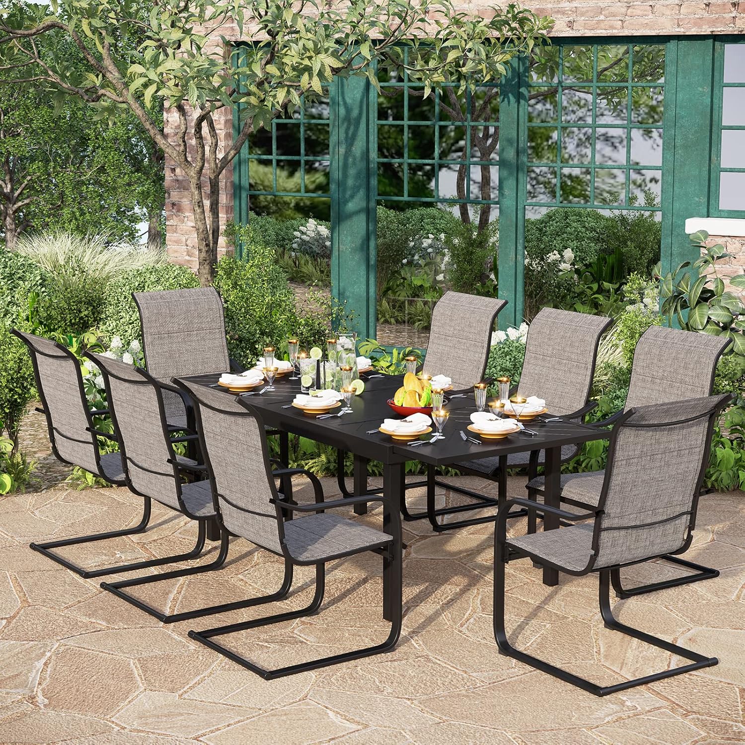 PHI VILLA 9 PCS Outdoor Dining Set,8 Spring Padded Dining Chairs with Higher Back and Extended Dining Table,Patio Furniture Set Waterproof,Rustproof for Garden, Yard