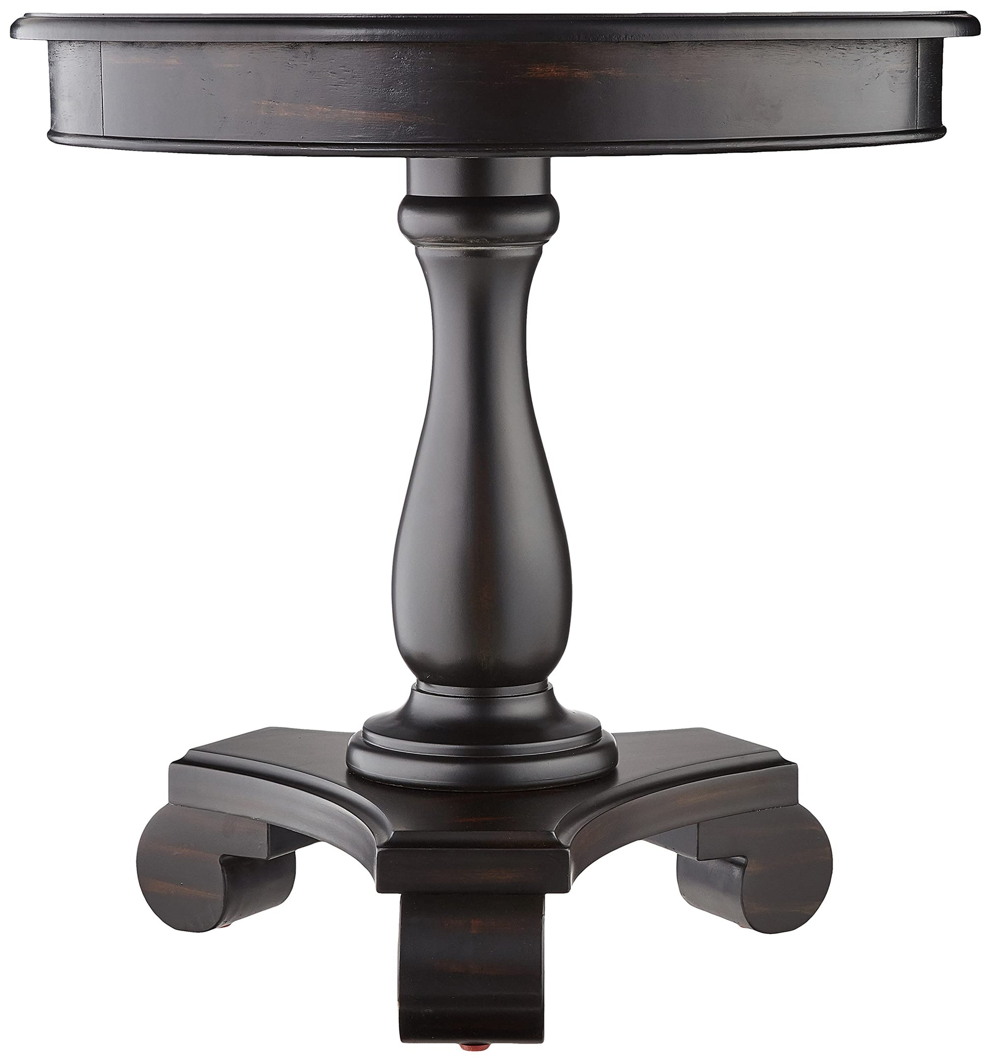 - Scaled large enough to offer practical display space, create Visual appeal.This end table is 26 inches around. It stands on a Sturdy, well-turned pedestal base that ends in carefully scrolled legs