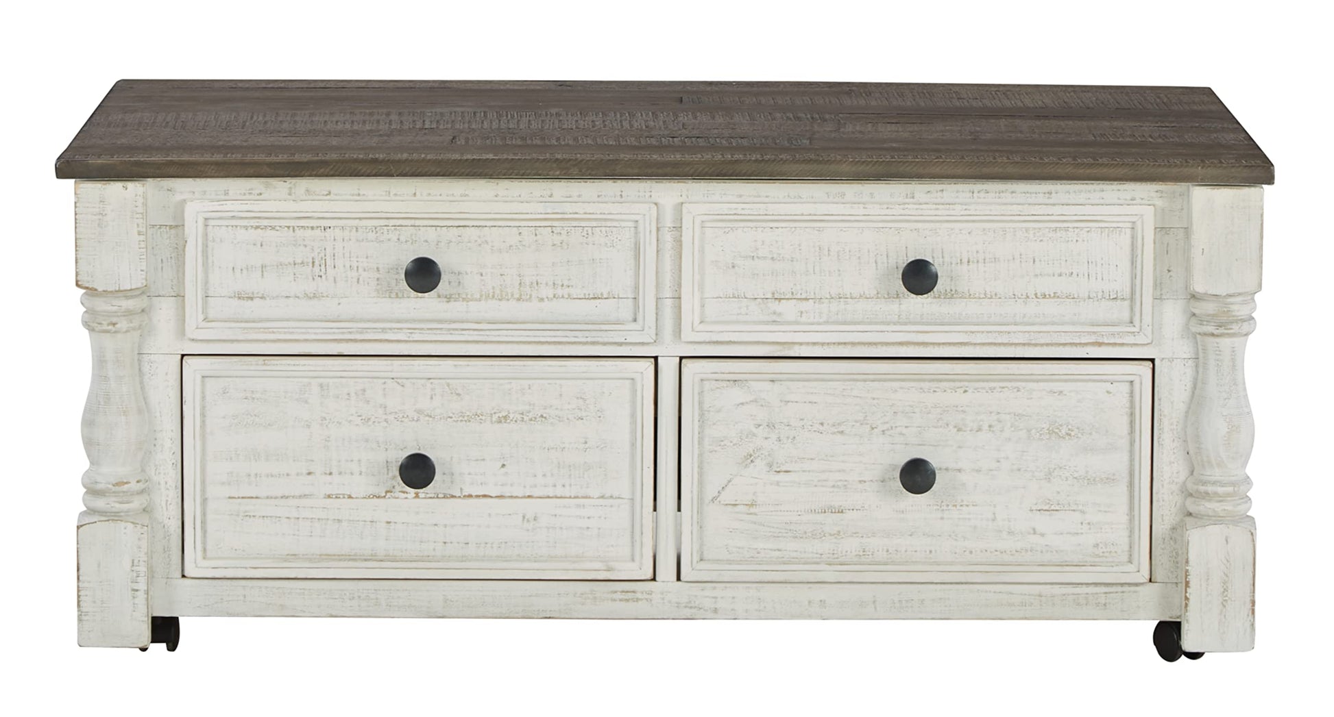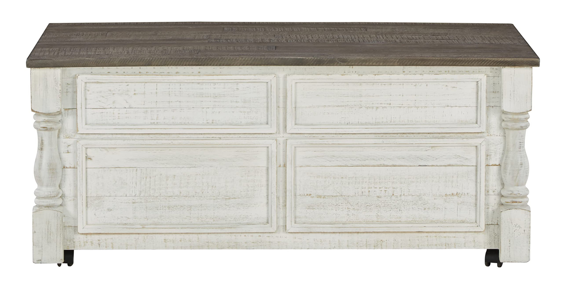 With its richly rustic finish and textural mix, this lift-top coffee table goes to town on bygone beauty. Its distressed two-tone treatment blends a weathered gray with vintage white for an utterly charming effect. The lift-top design adds function to your very comfortable space. From sculptures to decorative trays to flower vases, coffee tables can hold just about anything. With a wide variety of styles and materials, our coffee tables are a great option if you need durability and versatility. Whatever your needs, we have something just right for you that will bring your space to life. And we go the extra mile to package, protect and deliver your purchase in a timely manner.