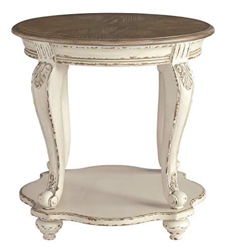 Signature Design by Ashley Realyn French Country Two Tone Round End Table, Chipped White