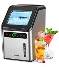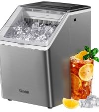 - CONVENIENT PORTABLE ICE MAKER: The sturdy handle makes the ice maker countetop easy to carry, while the scoop attaches to the basket for convenient storage. Weighing just 13.7 lbs, you can take this compact ice machine room to room or to an event with ease