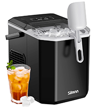 Silonn Ice Maker Countertop, Portable Ice Machine with Carry Handle, Self-Cleaning Ice Makers with Basket and Scoop, 9 Cubes in 6 Mins, 26 lbs per Day, Ideal for Home, Kitchen, Camping, RV