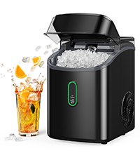 - EFFICIENT ICE MAKING: Make bullet-shaped ice cubes in just 6 minutes! The powerful compressor can produce up to 26 lbs per day with 1.3 lbs storage capacity. The 1.2 L water tank keeps the machine topped up and ready to go