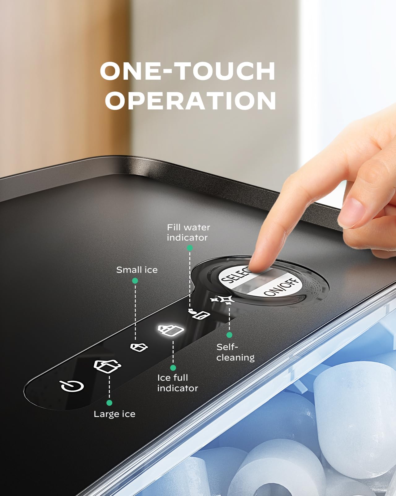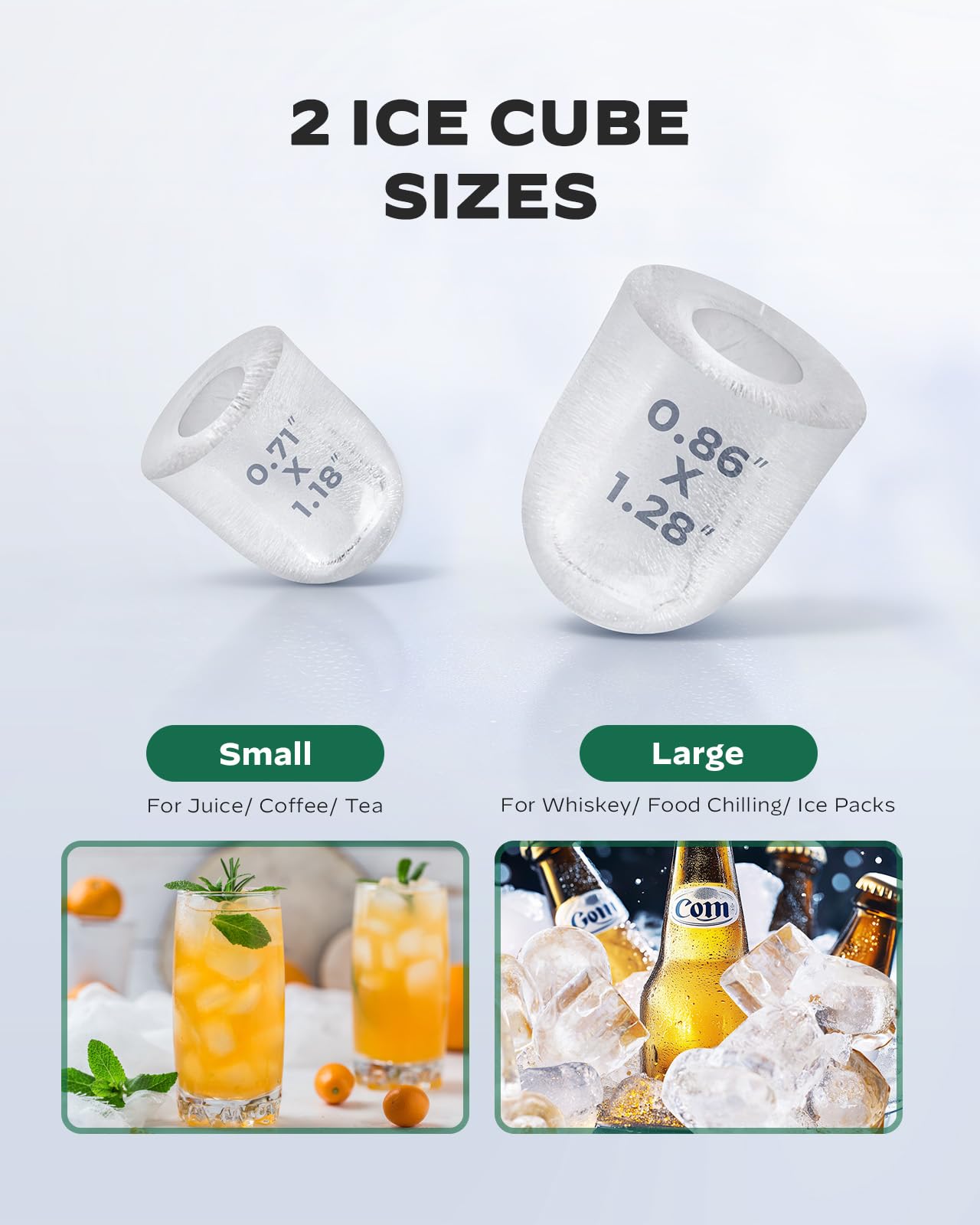 - SIMPLE CONTROL PANEL: Enjoy fresh ice with 3 easy steps! Fill the reservoir, switch the unit on, then select small or large ice cubes. The ice maker machine features an indicator light to notify when water needs to be added or ice is full. Upgrade your home or office with ice makers that both fast and easy to use