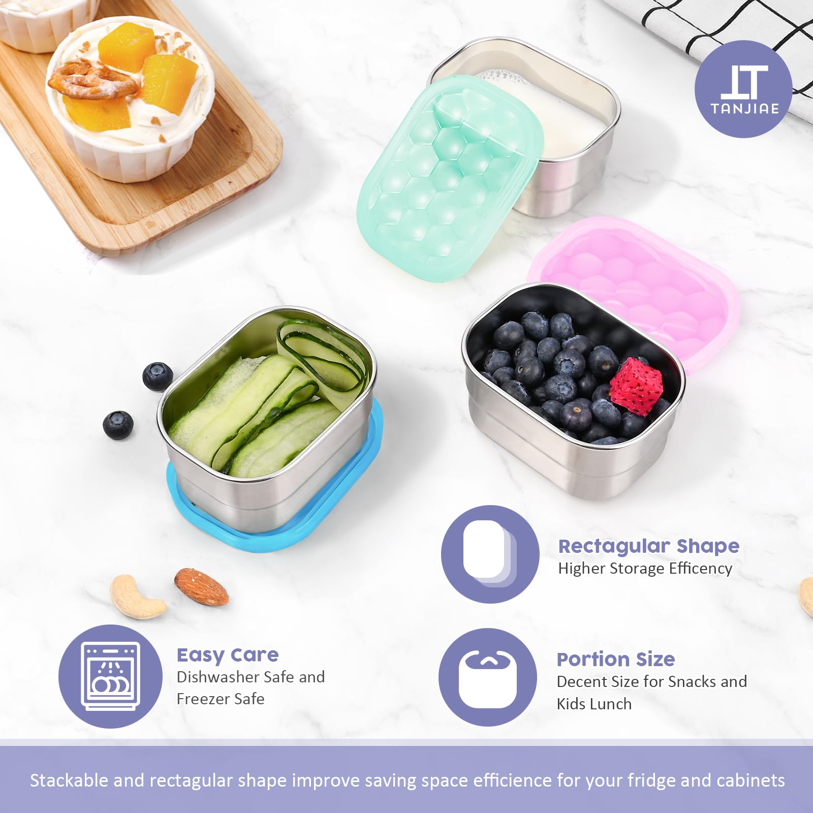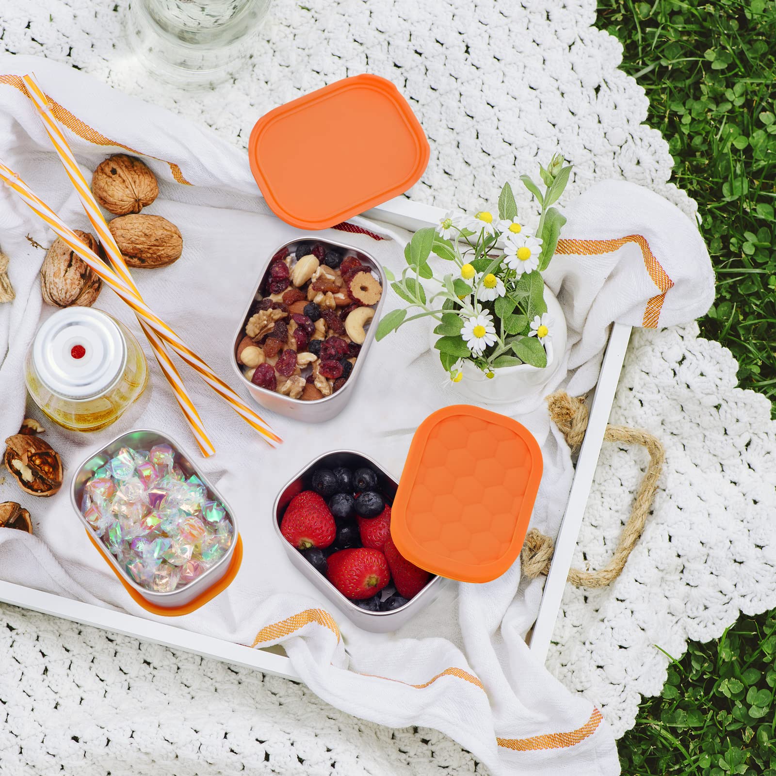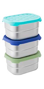 - KIDS-FRIENDLY: The cute small lunch containers with soft silicone lids are easy to open for kids. The snack containers for kids / toddlers are made from food grade stainless steel and silicone. They are completely plastic free and safe for the environment and all members of your family.