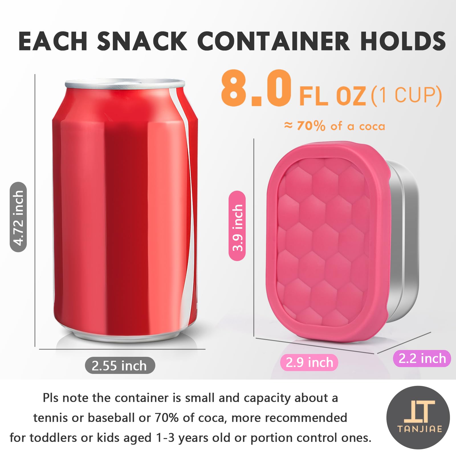 - STAINLESS STEEL SNACK CONTAINERS WITH SILICONE LIDS: Reusable kids snack containers for kids made from high-quality 18/8 stainless steel and 100% leak proof silicone lids. They are safe, healthy and ECO-FRIENDLY.