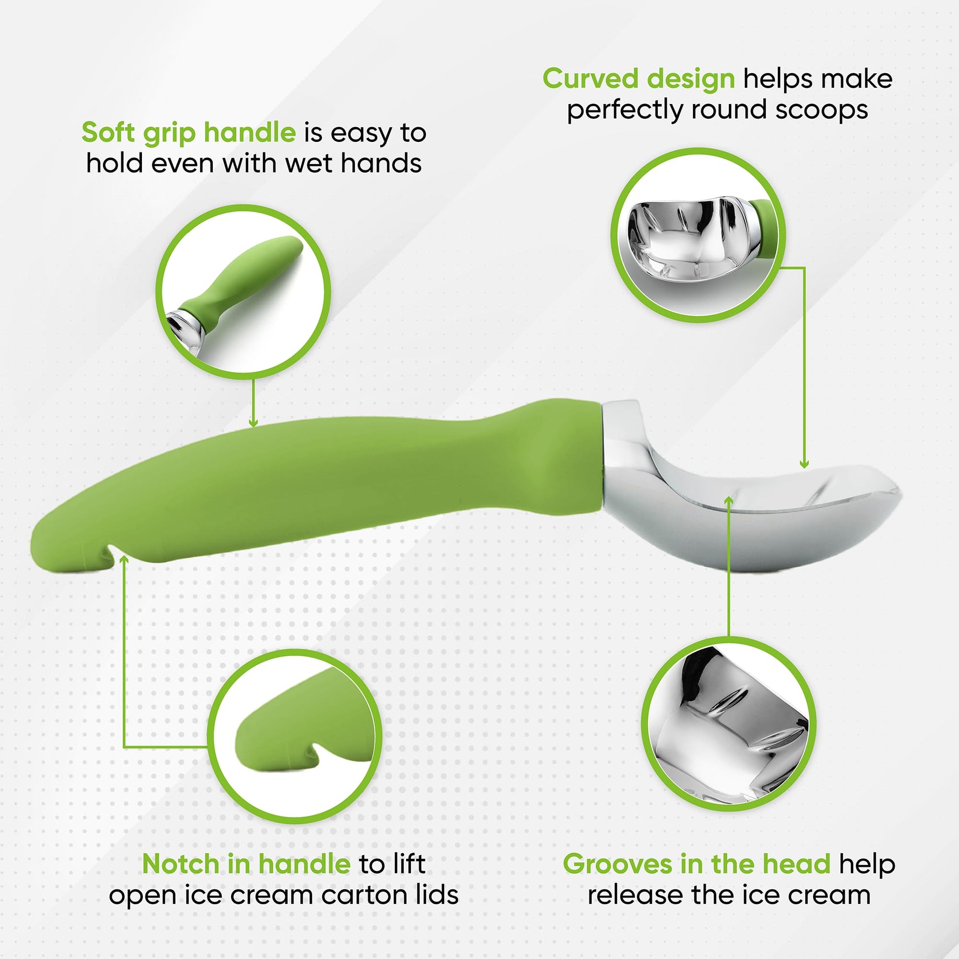 - LIFE IS TOO SHORT TO STRUGGLE WITH A BAD SCOOP - With its pleasant weight, ability to get into hard-to-reach parts of a carton and excellent handling of hard ice cream - this is the one for you. The handle is comfortable to hold, easy to grip and doesn't freeze your hand like scoops with a metal handle can. Simple yet ergonomic design that is easy to clean and will make you known for your perfect scooping abilities.