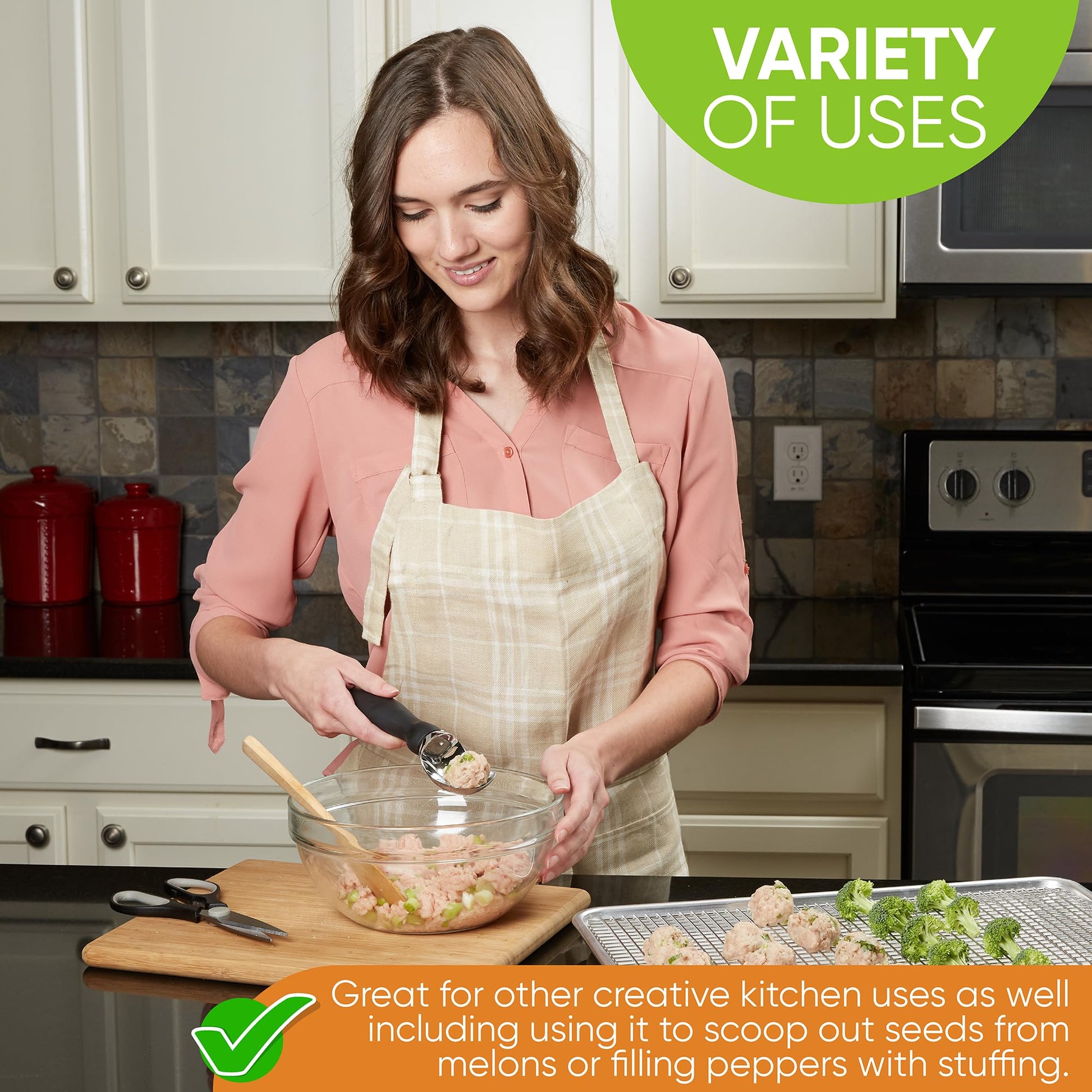 - CREATE PERFECT SPHERES OF ICE CREAM - cuts through smoothly and effortlessly so that ice cream curls onto itself, making beautiful and well-proportioned scoops for cones, brownies, sundaes, pies and more.