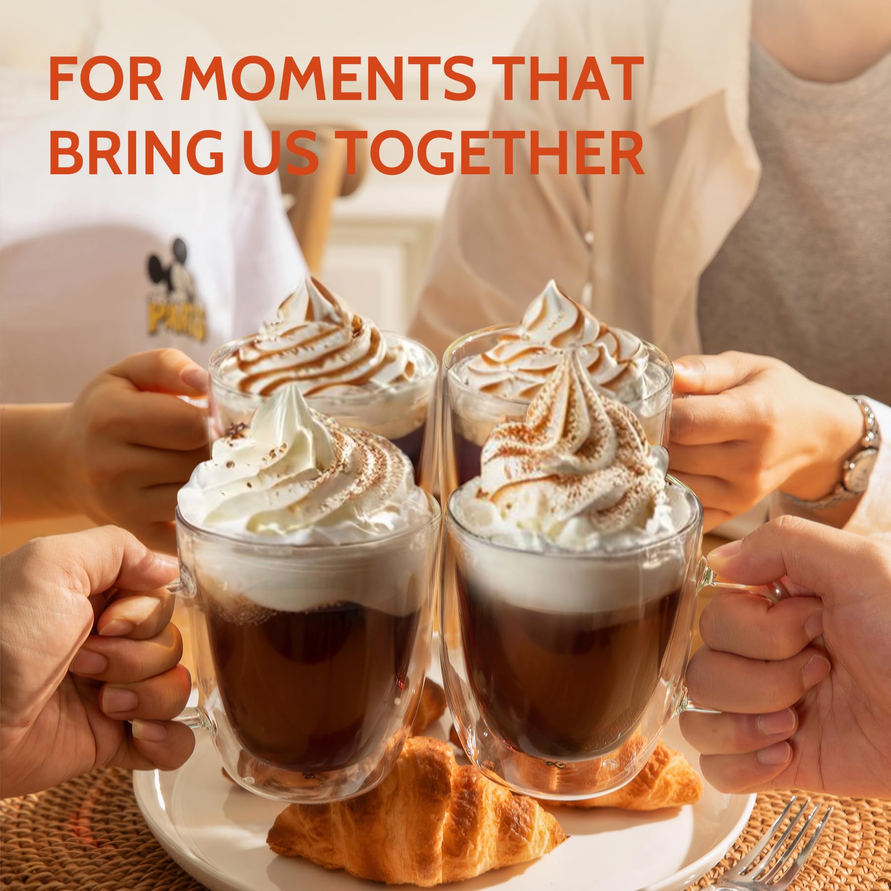 Sweese Double Wall Glass Coffee Mugs - 12.5 oz Insulated Clear Coffee Mugs Set of 2, Perfect for Espresso, Cappuccino, Latte, Americano, Tea Bag, Beverage