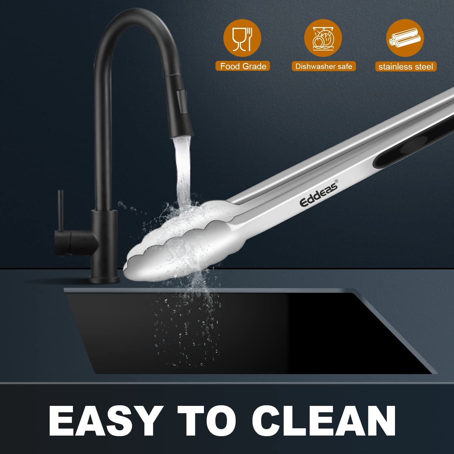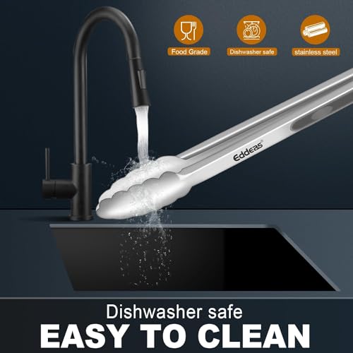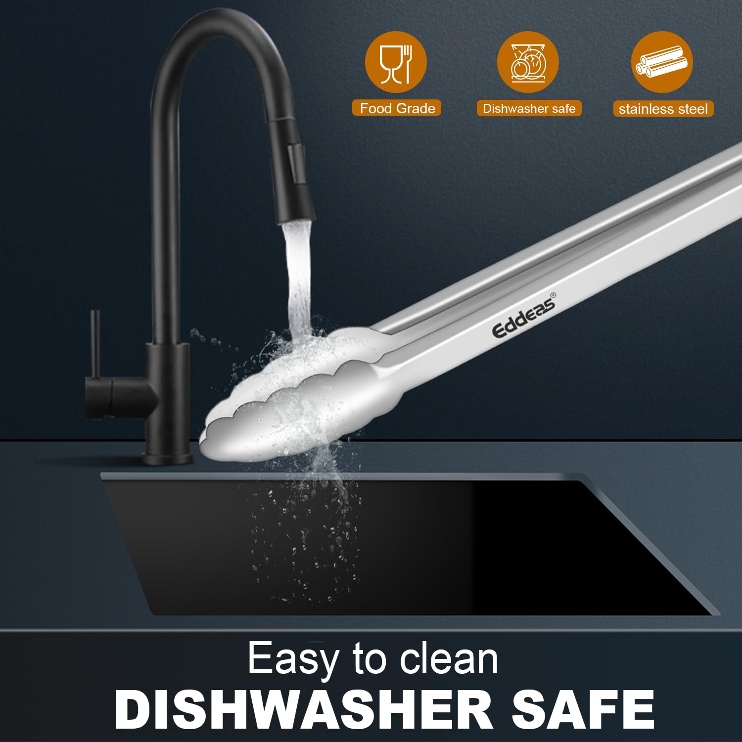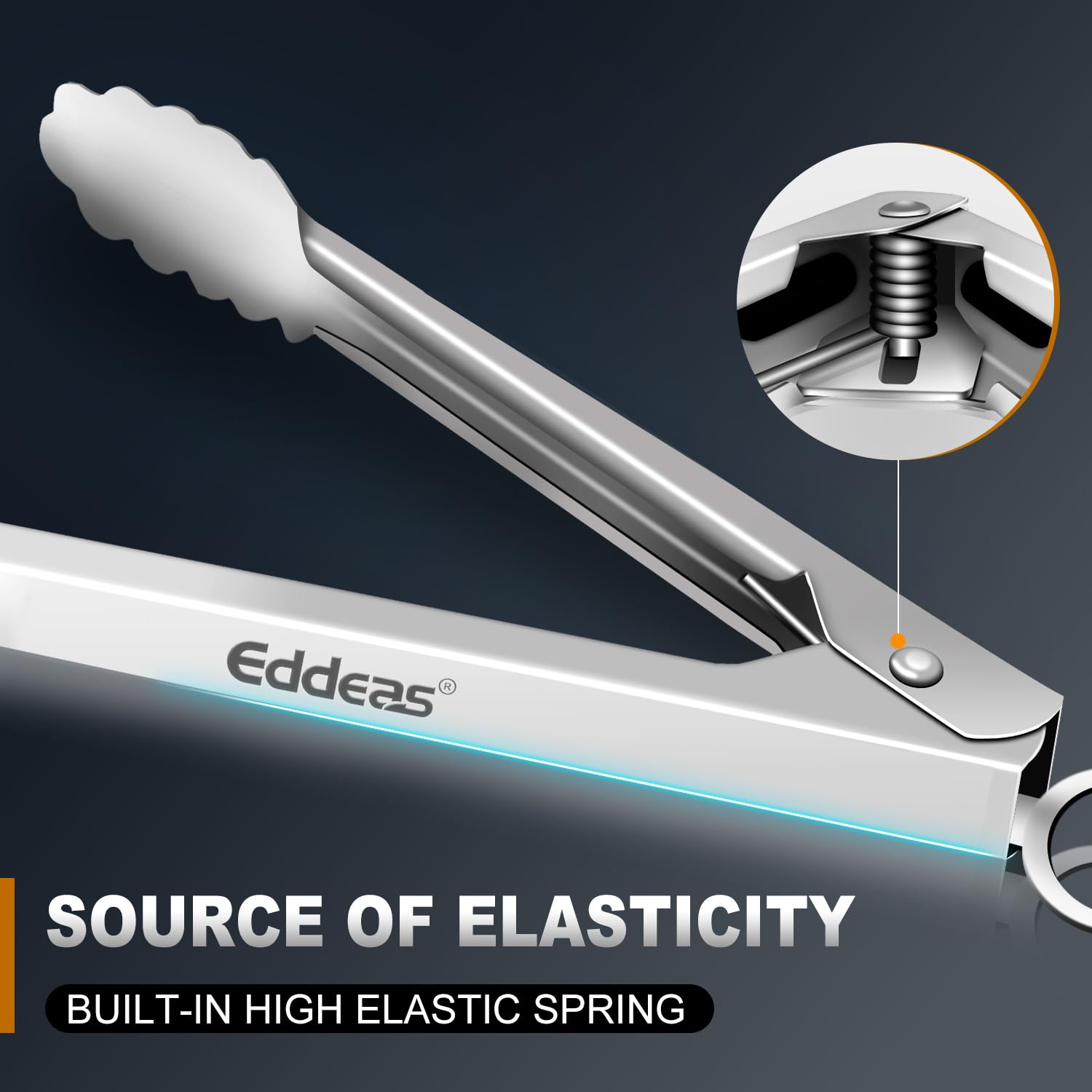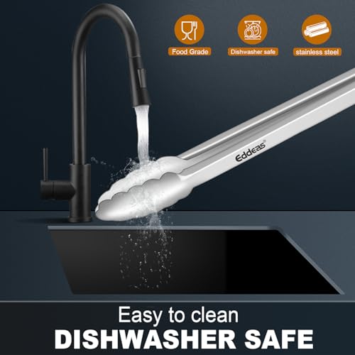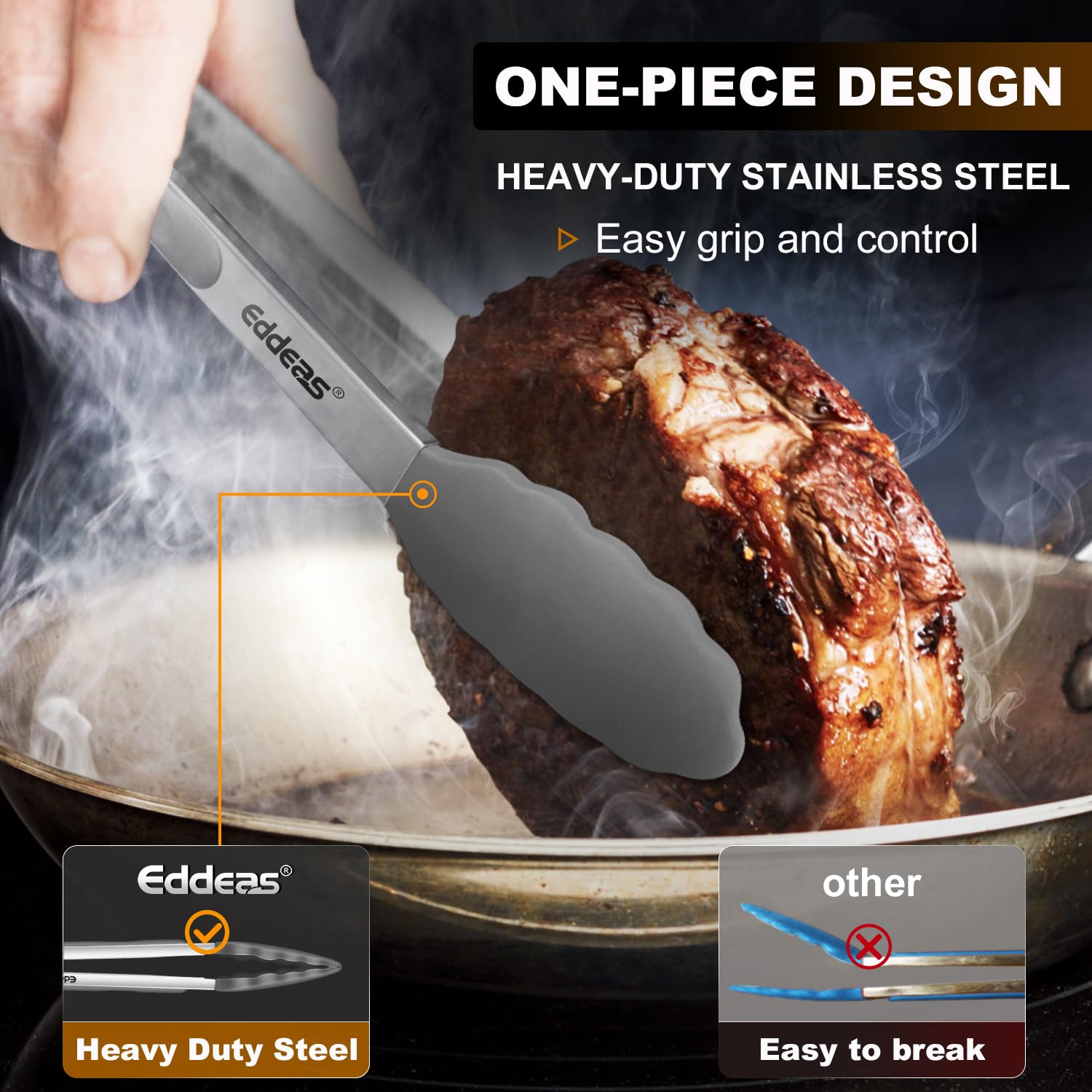 - STRUDY FOOD-GRADE STAINLESS STEEL COOKING TONGS - EDDEAS kitchen tongs for cooking are made of 1mm thick food-grade stainless steel in one piece for enhanced robustness and heat resistance, rust resistance and easy handling. The overall light weight and ergonomic features are maintained.
