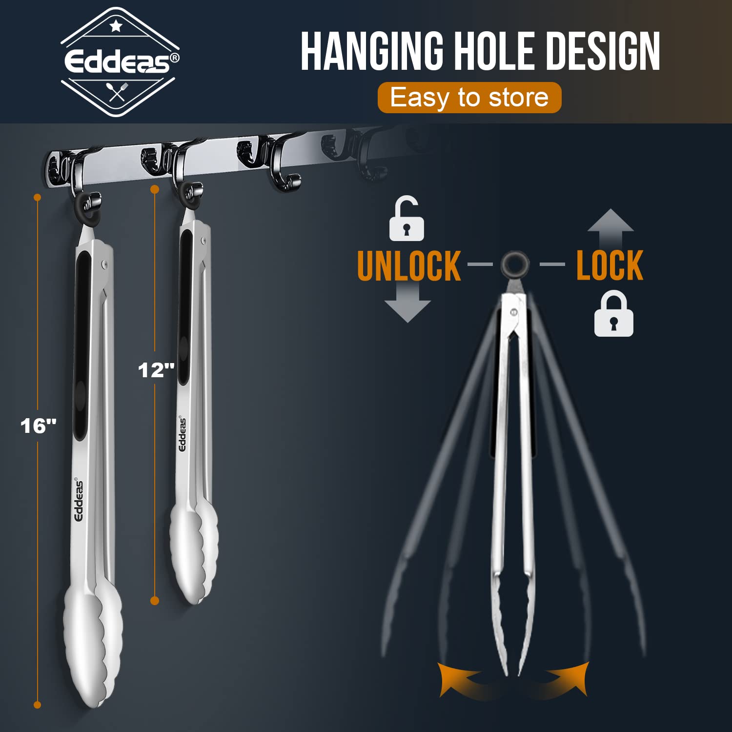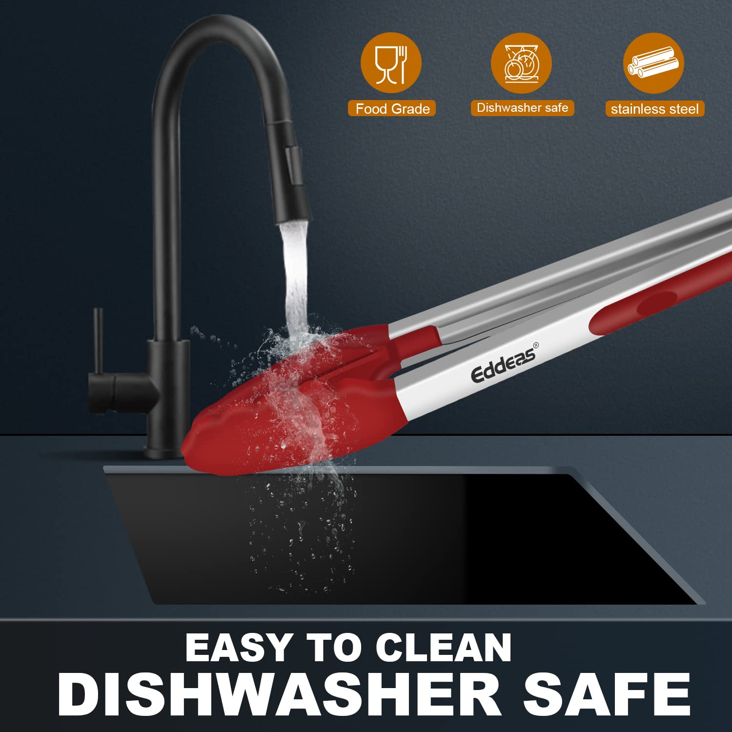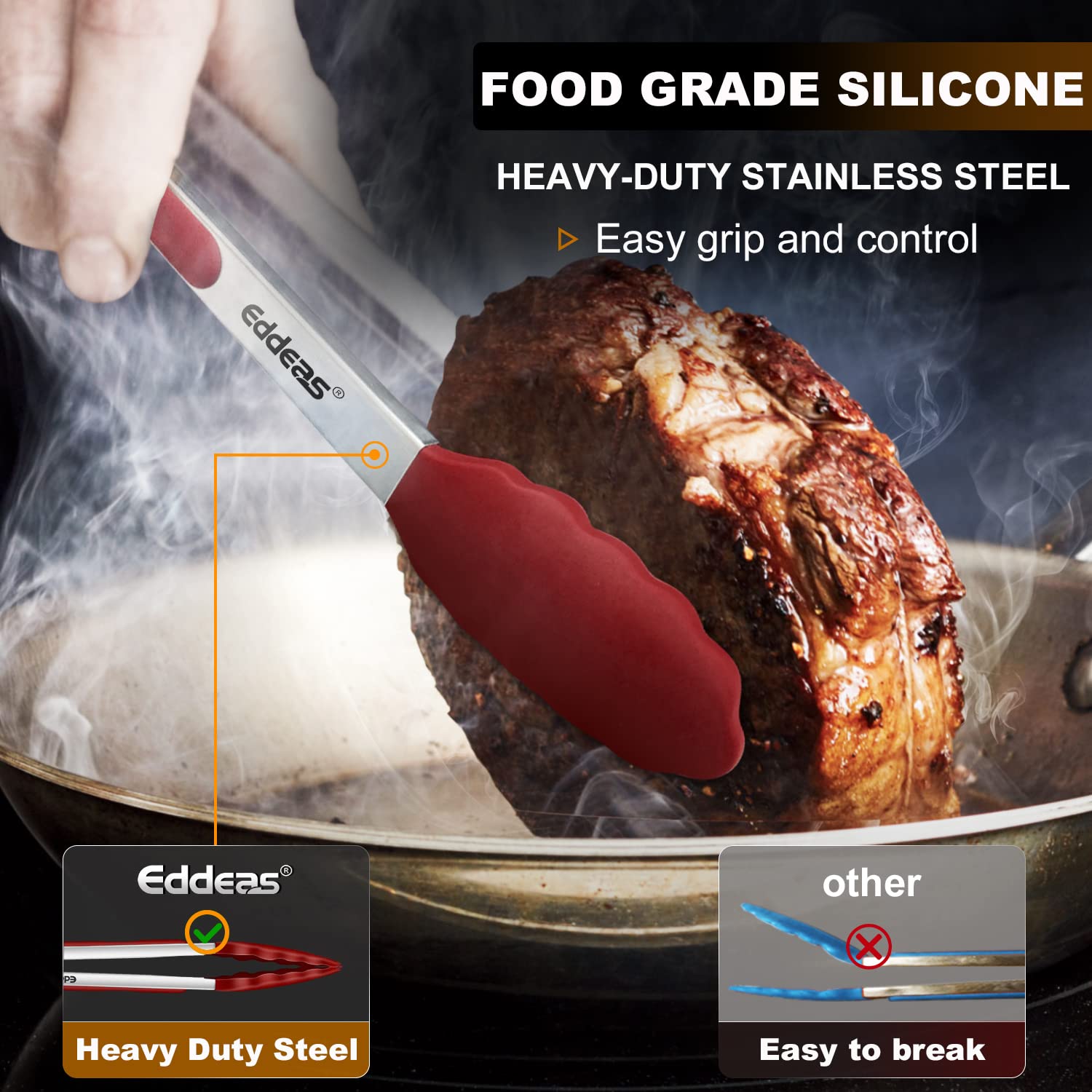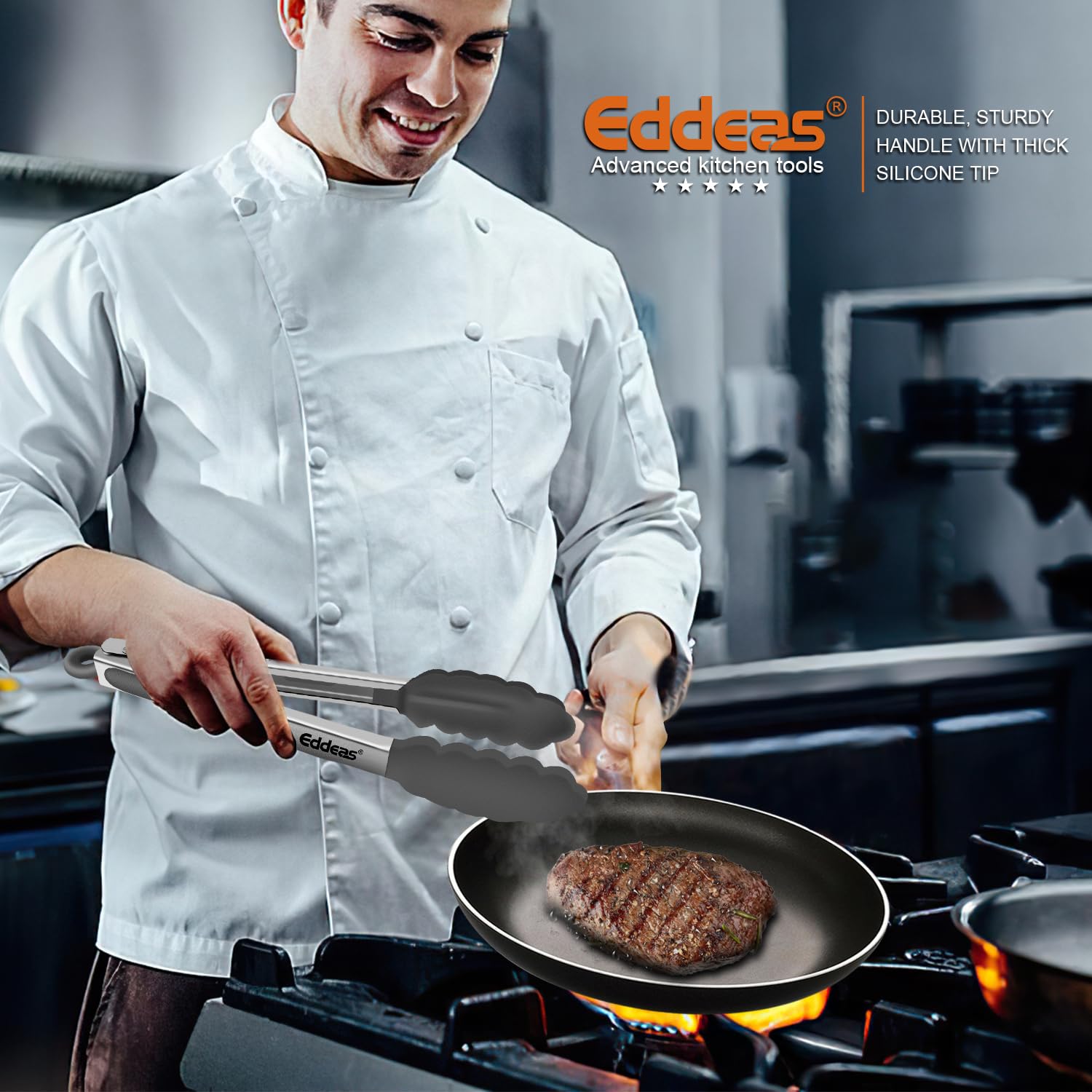 - STRUDY FOOD-GRADE STAINLESS STEEL COOKING TONGS - EDDEAS kitchen tongs for cooking are made of 1mm thick food-grade stainless steel in one piece for enhanced robustness and heat resistance, rust resistance and easy handling. The overall light weight and ergonomic features are maintained.