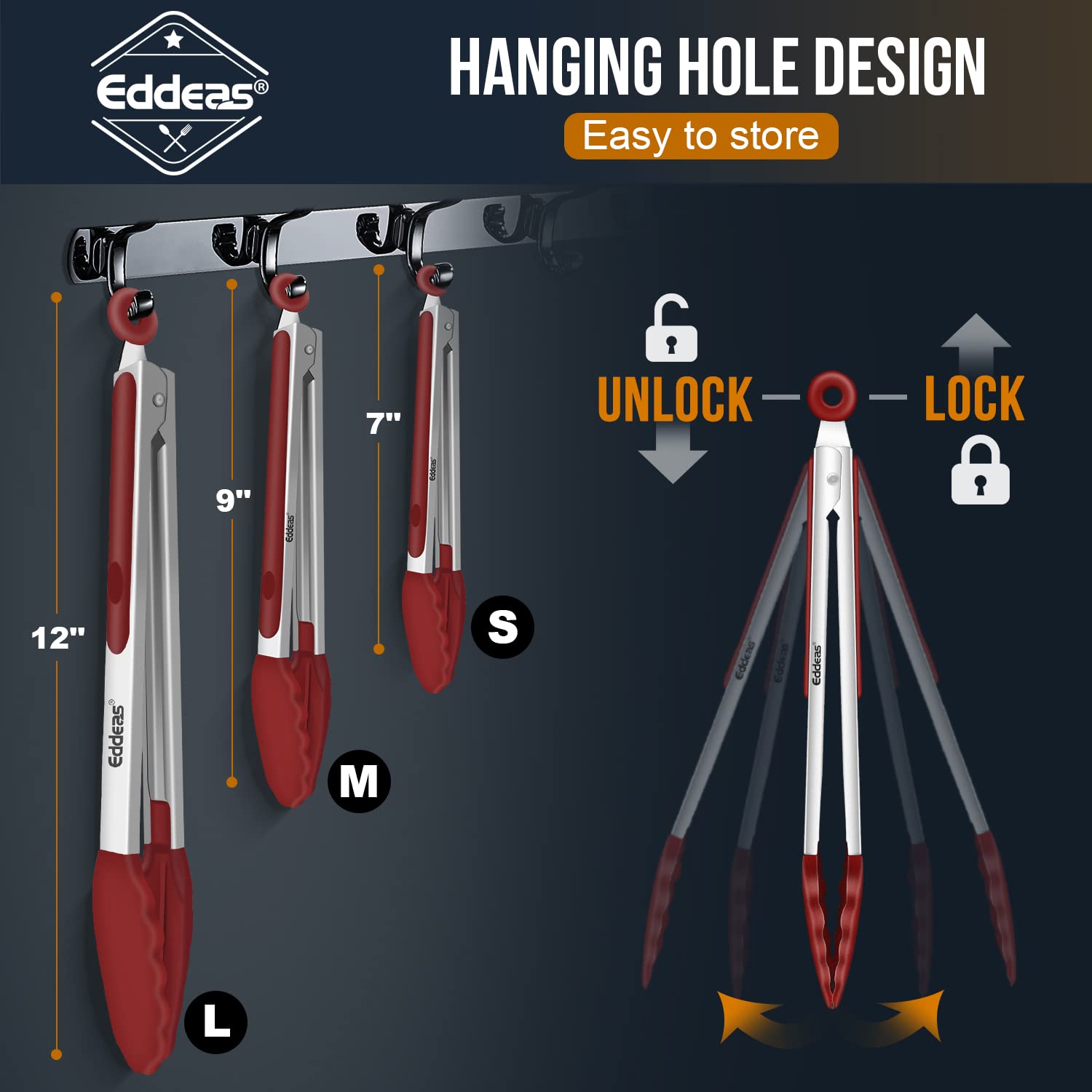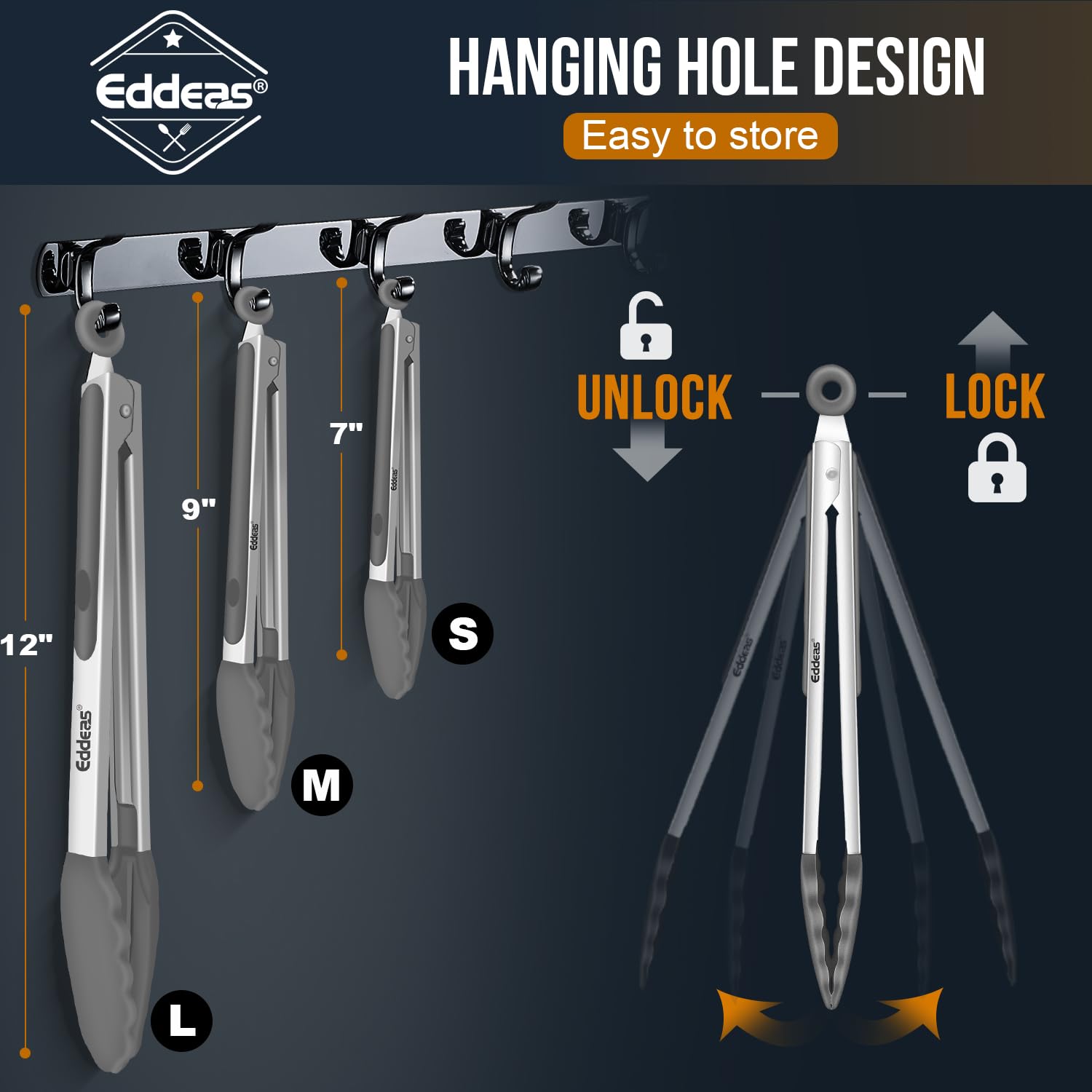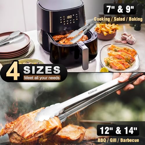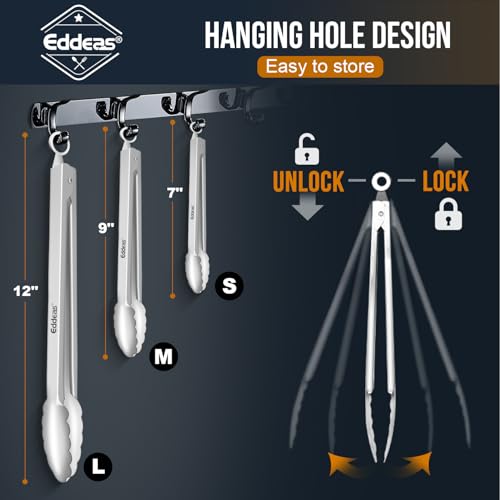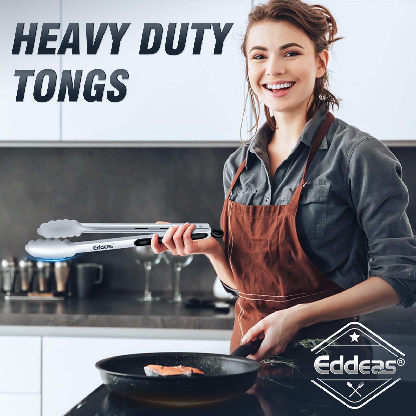 - MULTIPLE APPLICATION - Perfect for everyday kitchen tasks or outdoor use, whether you use them as cooking tongs , salad tongs, grill tongs, need reliable Heavy Duty Metal KitchenTongs for Cooking to grab food from boiling water, or as a grill Turner or salad server, EDDEAS tongs will meet your needs for safety and stability.Size:7in+9in+12in