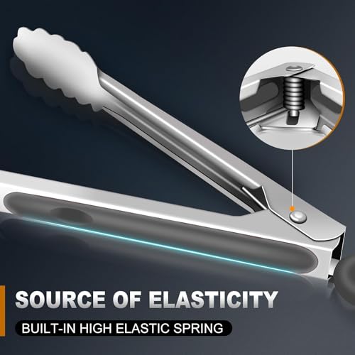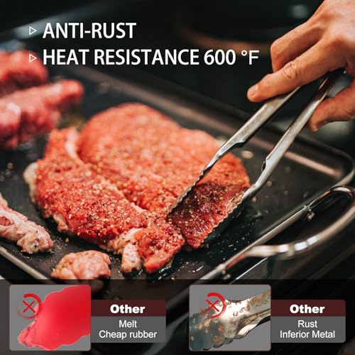 - HEAT RESISTANT ERGONOMIC HANDLES - Tongs For Cooking have ergonomic handles with silicone cushioning to ensure good grip and control, avoid burns and provide greater comfort. The metal tongs are super heat resistant and easy to clean, simply hand wash or put in the dishwasher.