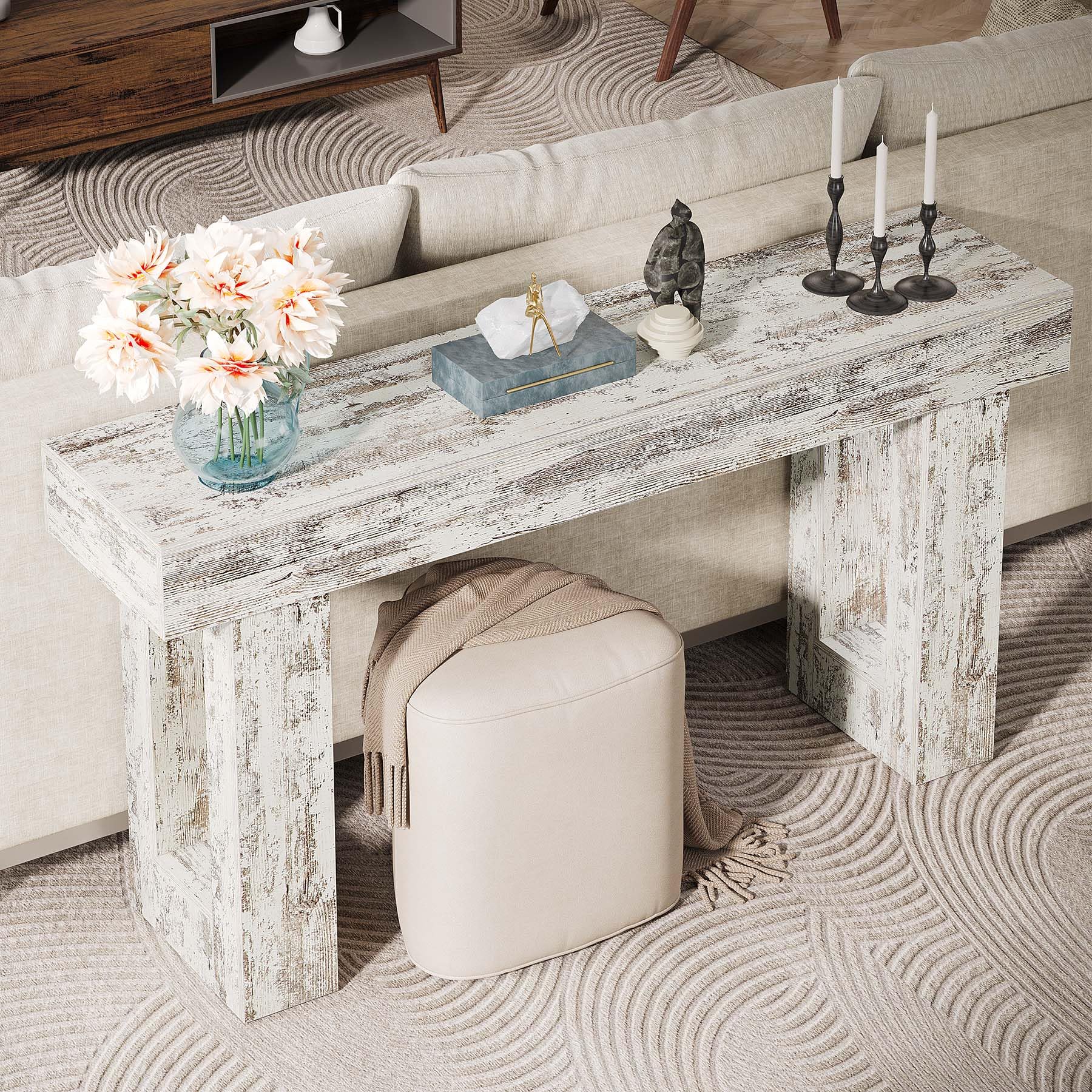 - 【Country-Inspired Elegance with Generous Length】: The hallway console showcases a charm endemic to farmhouse-style decor. Its impressive length of 63 inches lends abundant space for the display of decorative pieces like lamps, photo frames, or vases, creating a welcoming ambiance in any home