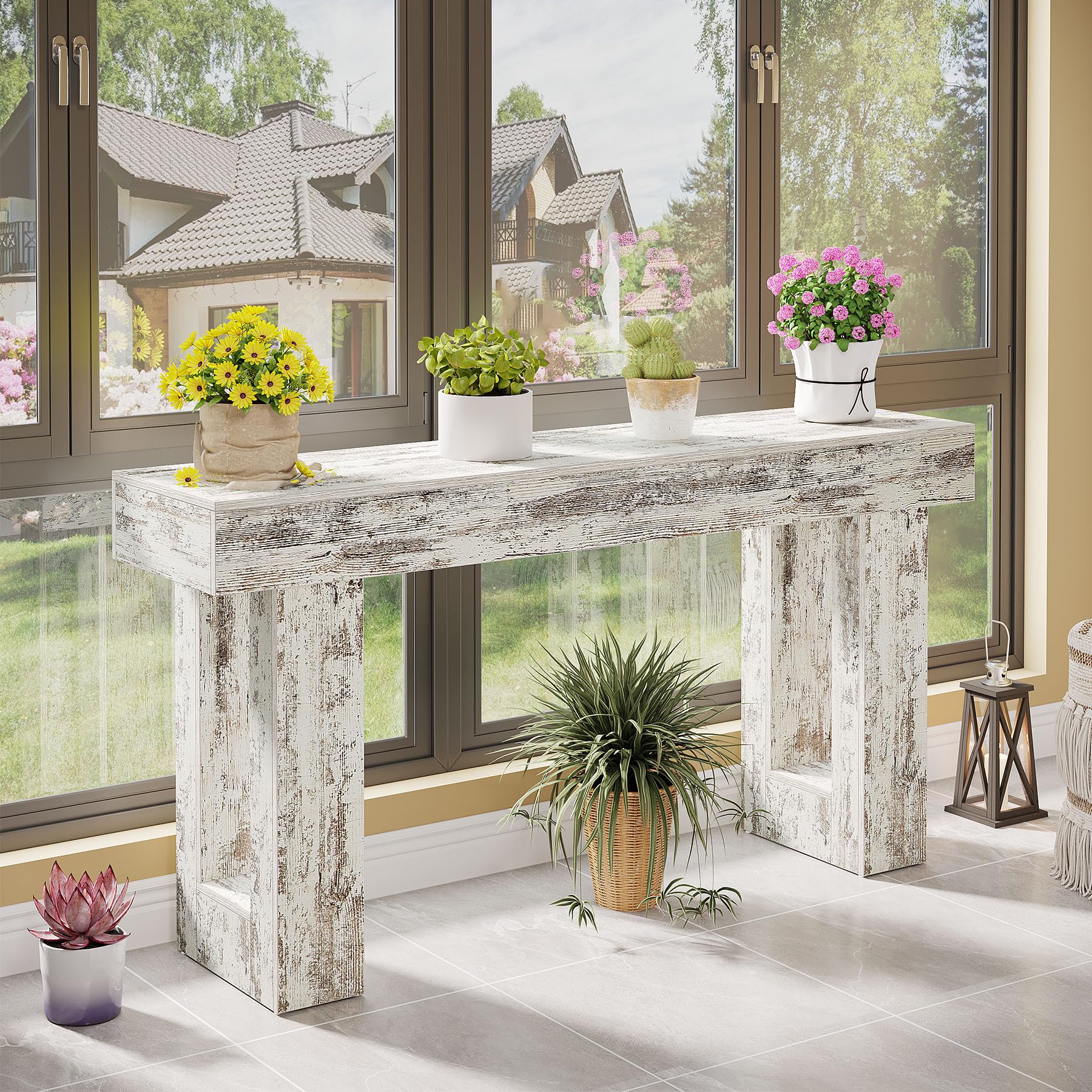- 【Sturdy Craftsmanship and Material 】: Built using engineered wood MDF, the console table is designed to withstand daily wear and tear. Its appealing wood-like finish contributes to an authentic aesthetic, enhancing its rustic appeal and solid construction