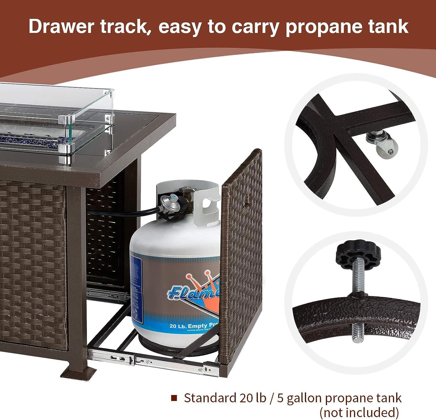 - 【Durable & High Quality Material】: The reliable all-weather-resistant PE rattan bring you impressive strength and durability. The frame of our gas fire pit table is made of Powder-coated Aluminum, which is sturdy, rust resistant and heat resistant. The combination of these two materials looks so beautiful and elegant, perfect for your terrace and backyard.