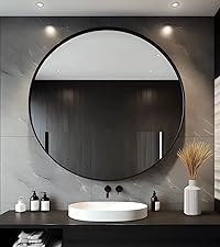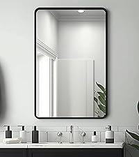 - 【Minimal Decor】 The modern shape and the deep inset of the glass surrounded by the matte black finish of the frame gives this mirror a soft, contemporary feel
