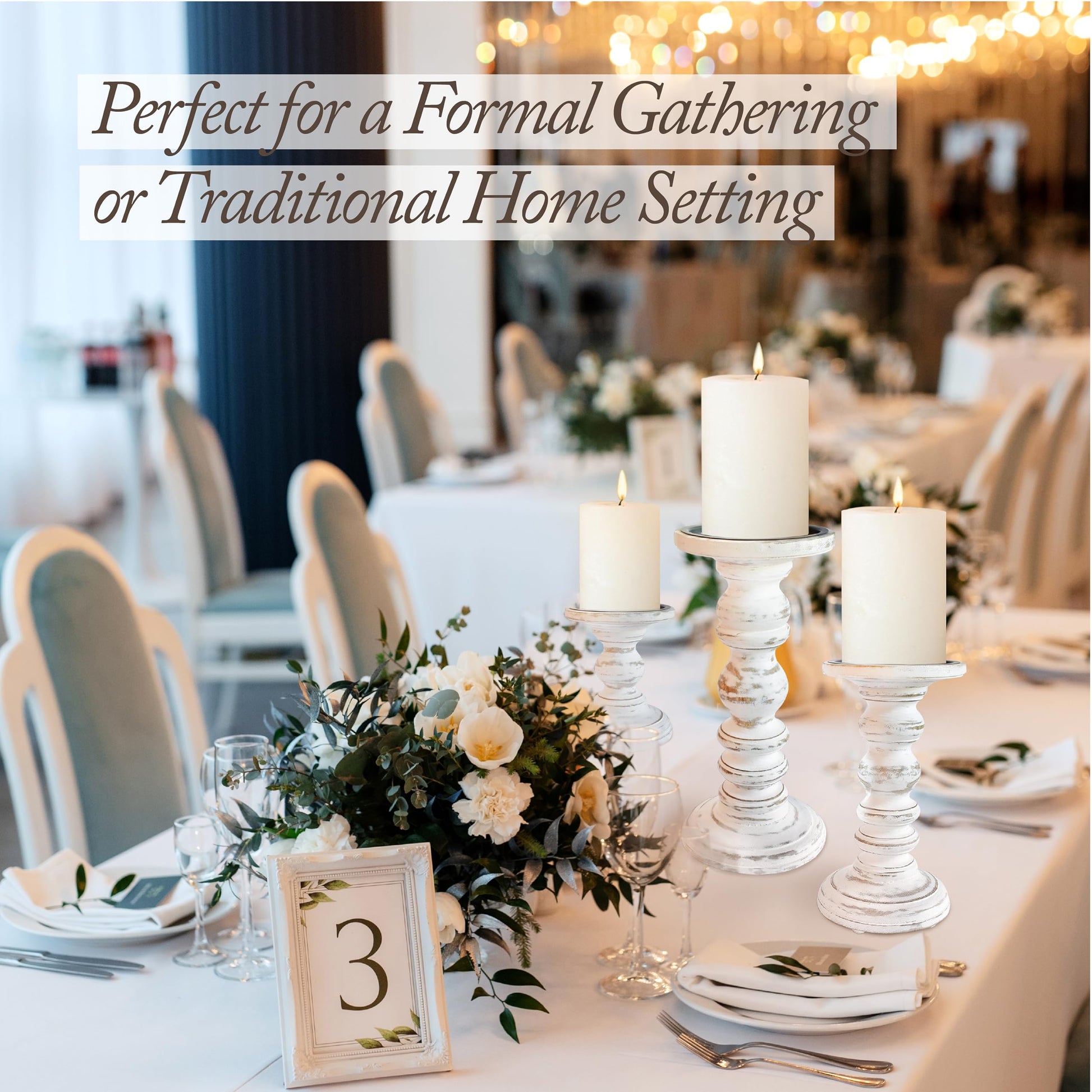 - GIFT SET: Give the gift of warmth, beauty, and enchanting candlelight with our Antique Pillar Candle Holder Set for those hard to shop for friends and family who appreciate beautiful rustic farmhouse or french country living room decor - candlestick holder decor.