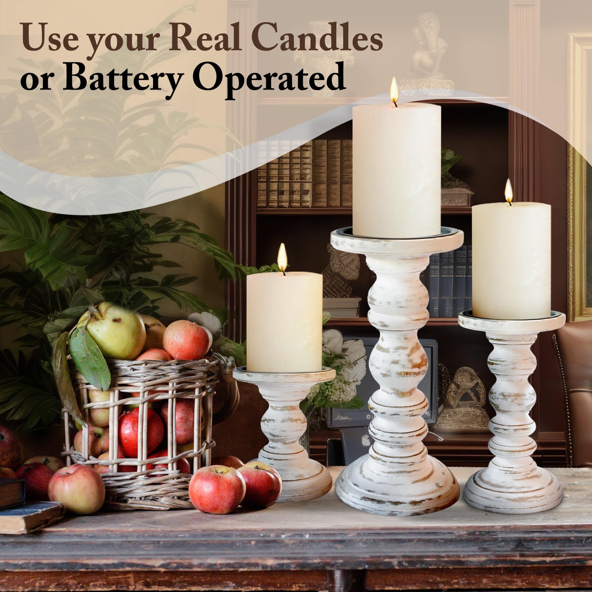 - COZY CHARMING GLOW: Our Modern Farmhouse Decor Pillar Candle Holders can be used for your Fireplace Mantle Decor, Dining Table Centerpiece Decor, Table Decor for Living room. Or anywhere else you need the charming ambiance of real or battery operated pillar candles.