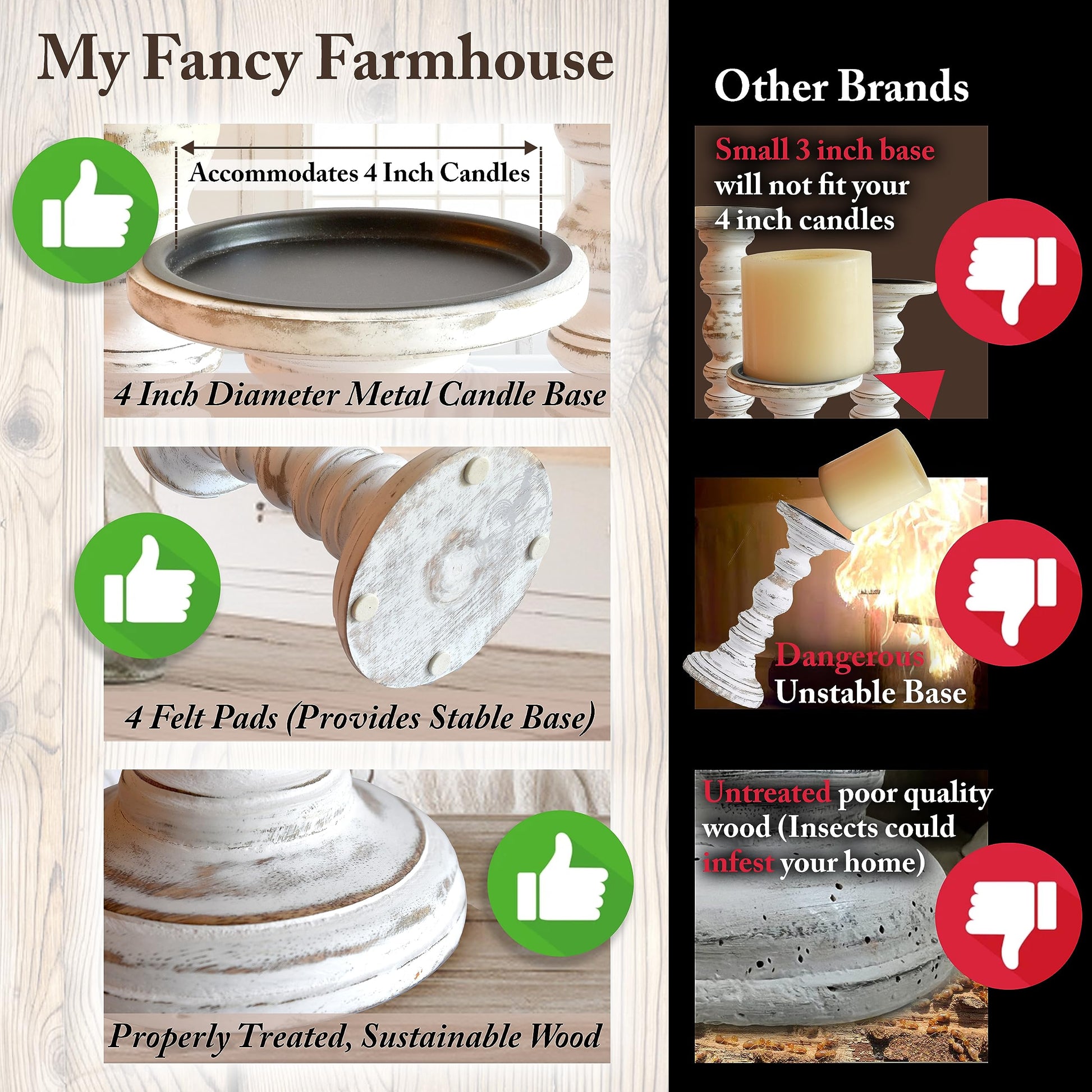 - QUALITY: Not all Wooden Pillar Candle holders are alike. Some of the other candle holders you may find are not made with the same attention to detail as these pillar candle holders. We spend the time to get it right so you are happy with our products for years to come.