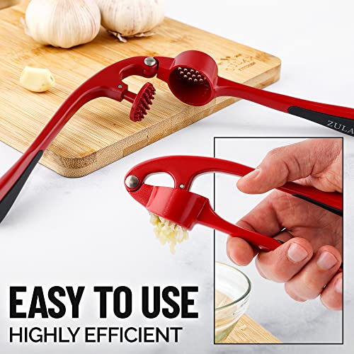 Zulay Kitchen Premium Garlic Press Set - Rust Proof & Dishwasher Safe Professional Garlic Mincer Tool - Easy-Squeeze, Easy-Clean with Soft, Ergonomic Handle - Silicone Garlic Peeler & Brush (Silver)
