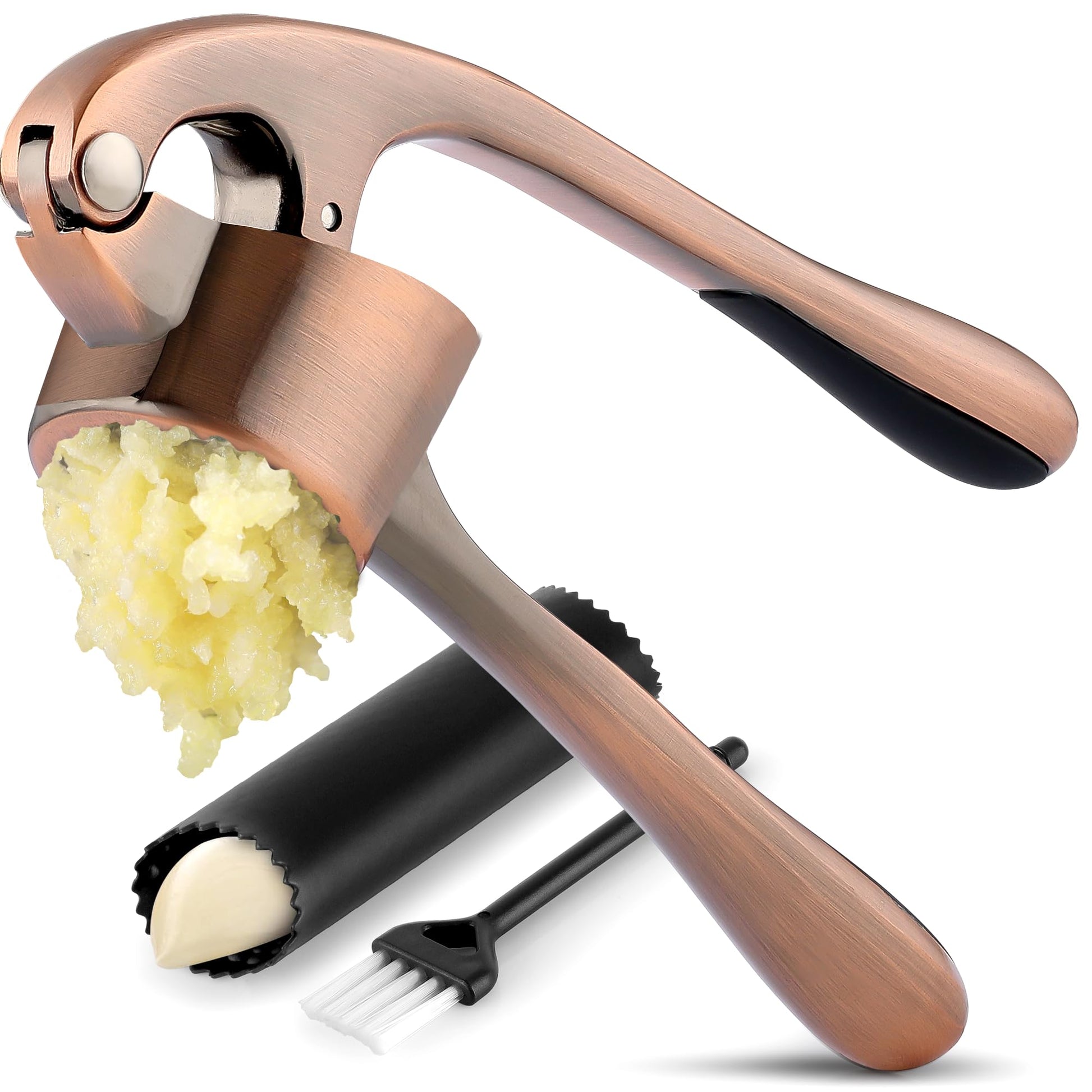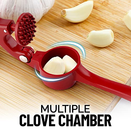- MULTI-PURPOSE TOOL: Don’t have a mortar and pestle? Fill the garlic mincer tool with coriander seeds, cumin seeds, or peppercorns when any recipe calls for “freshly cracked” or “coarsely ground” seeds. This garlic presser can also be used as a ginger press tool or to crush onions or nuts. Simply fill the chamber and squeeze to crush.
