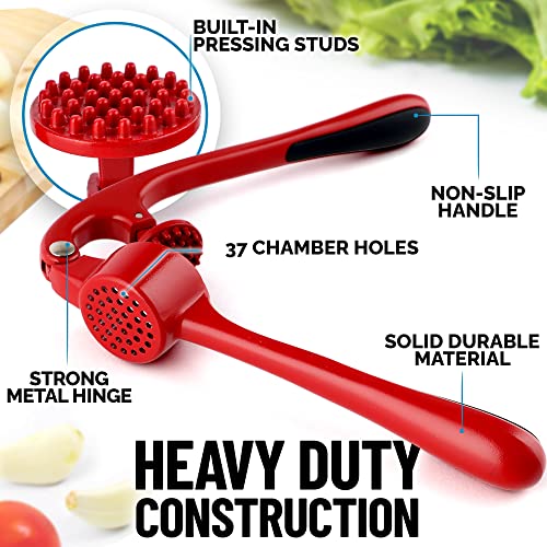 - EASY TO CLEAN: Simply rinse your garlic and ginger press tool under running water and use the included cleaning brush to get rid of any garlic bits or place it in the dishwasher for a quick clean up. We recommend rinsing the garlic crusher right after use to avoid residual pulp and fibers hardening up.